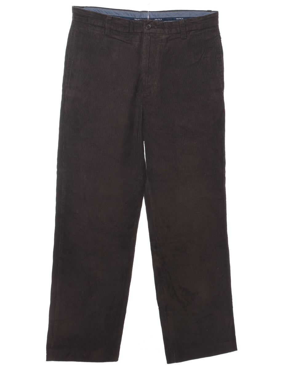 Corduroy dark brown Nautica trousers with belt loops and multiple pockets.