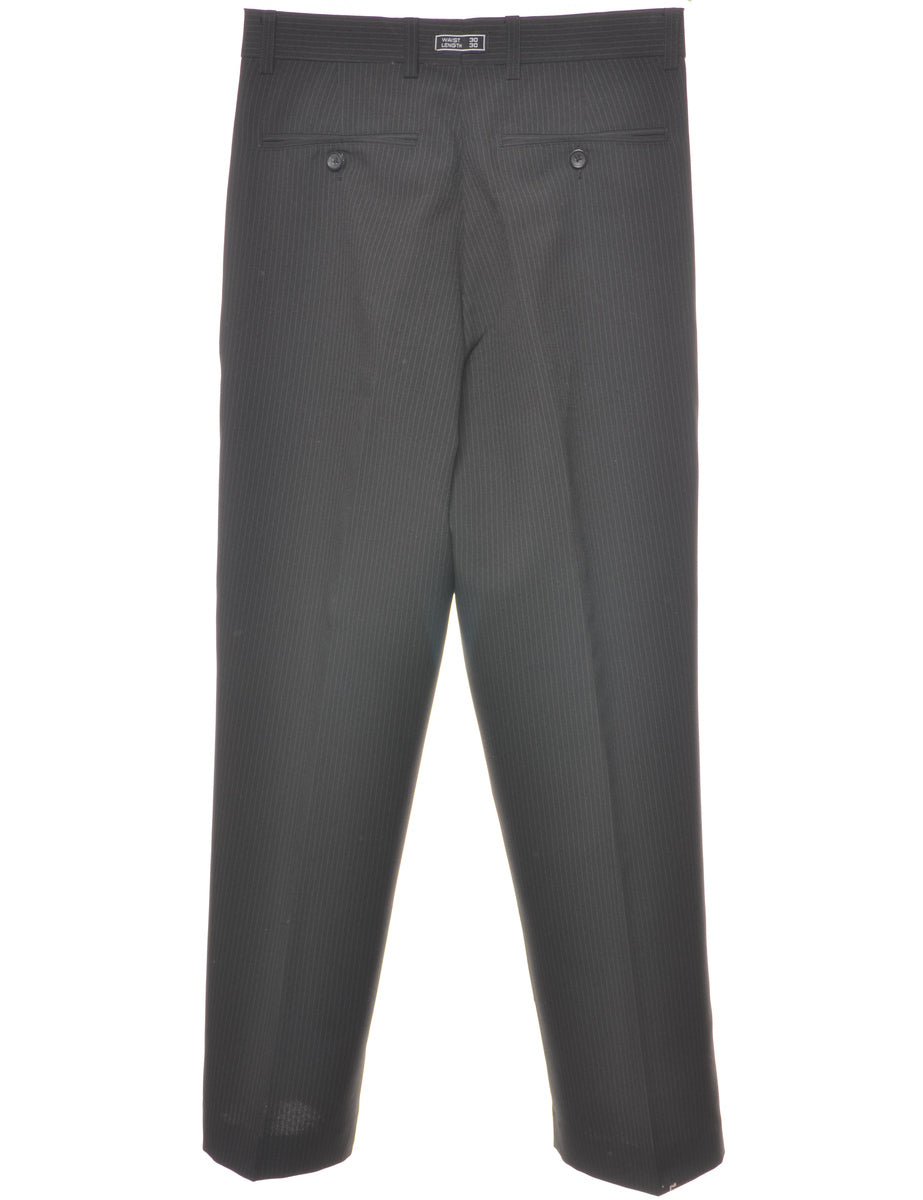 Vintage Pinstriped Black Trousers - W30 L30