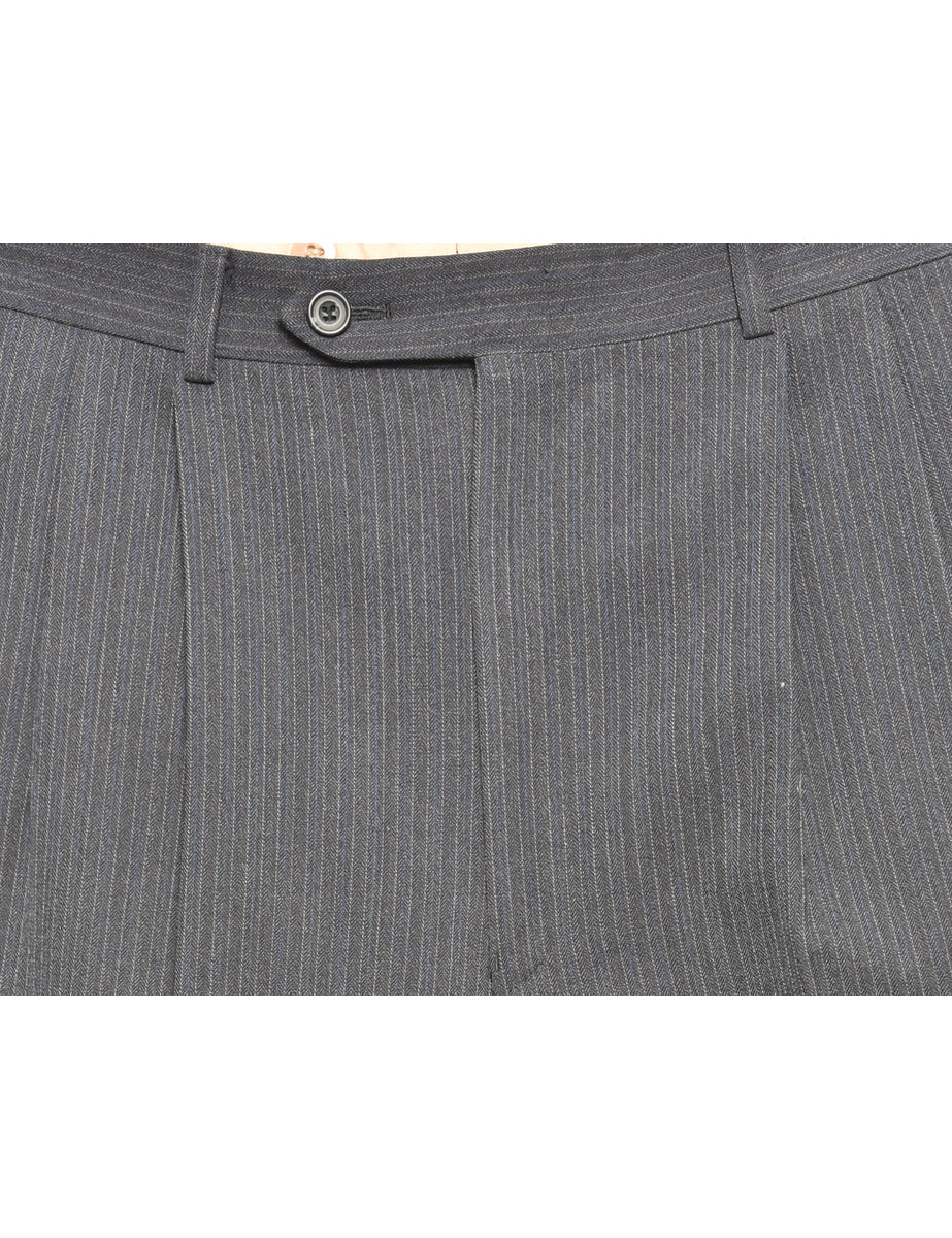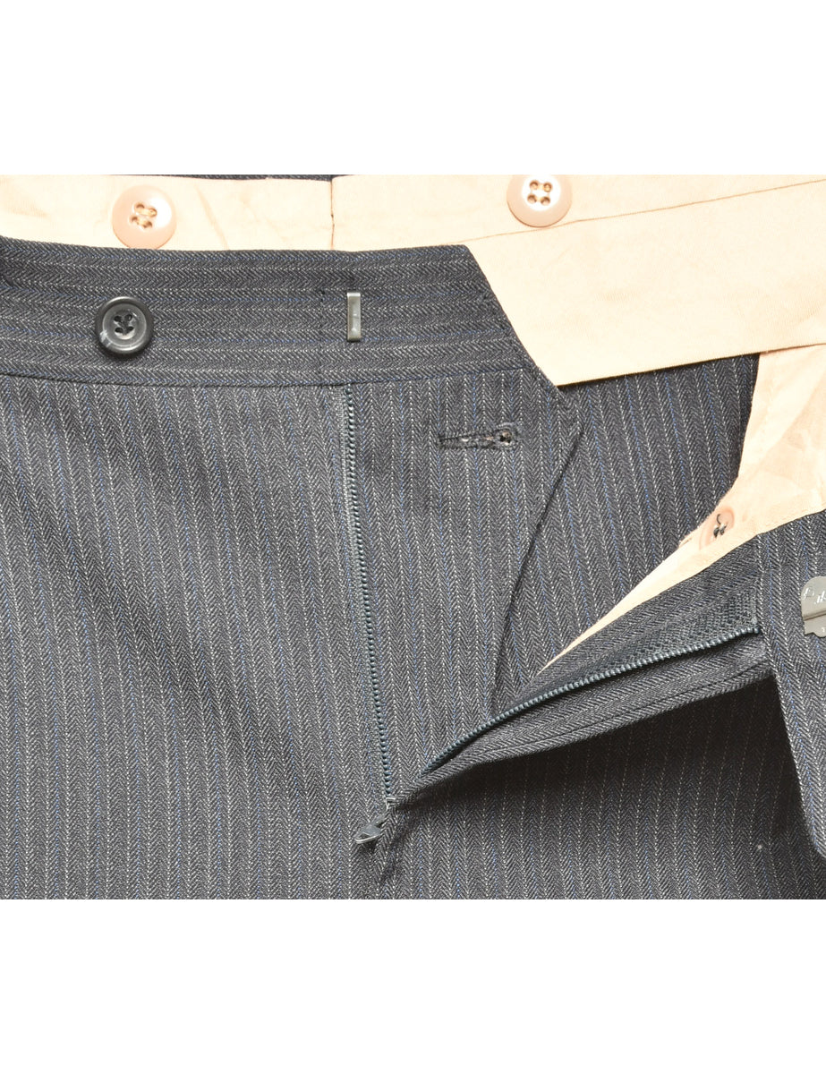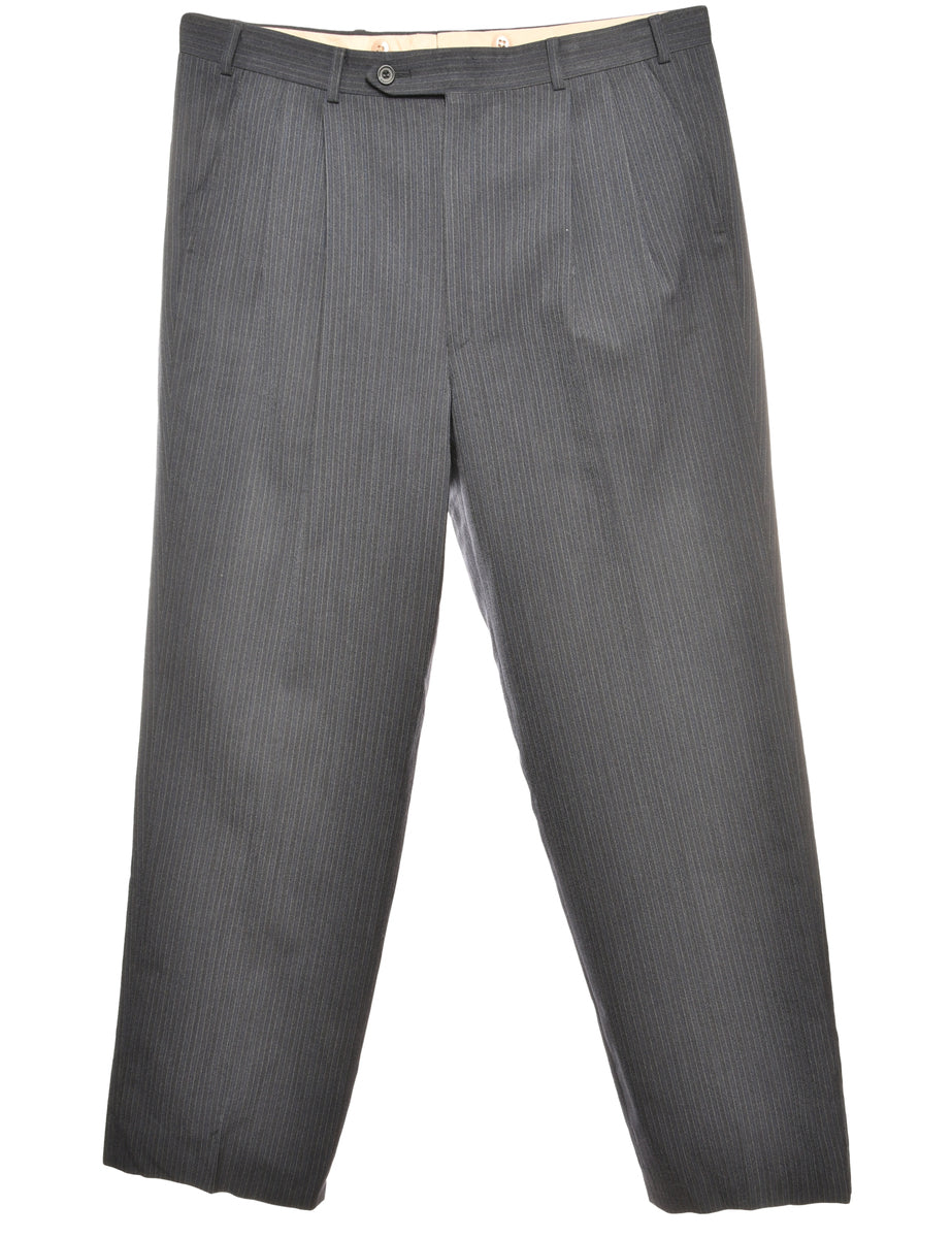 Grey pinstriped tapered trousers complete with multiple pockets.