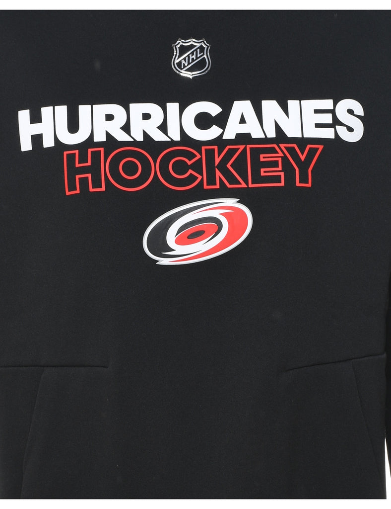 Hurricanes hockey black printed hoodie complete with a pocket.
