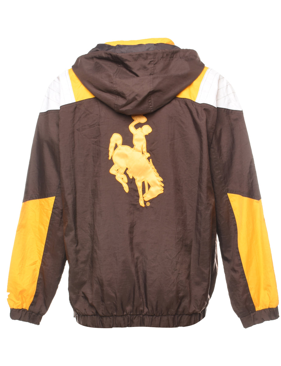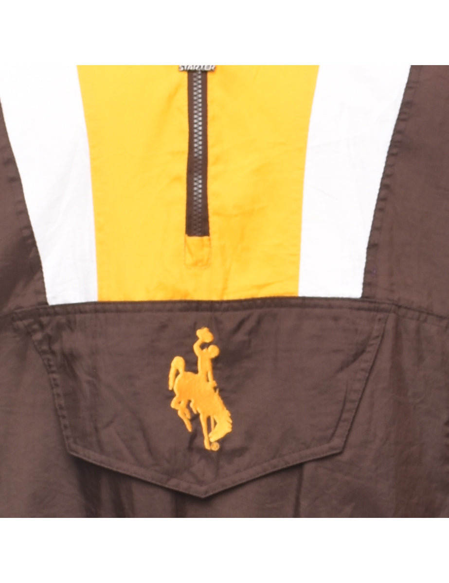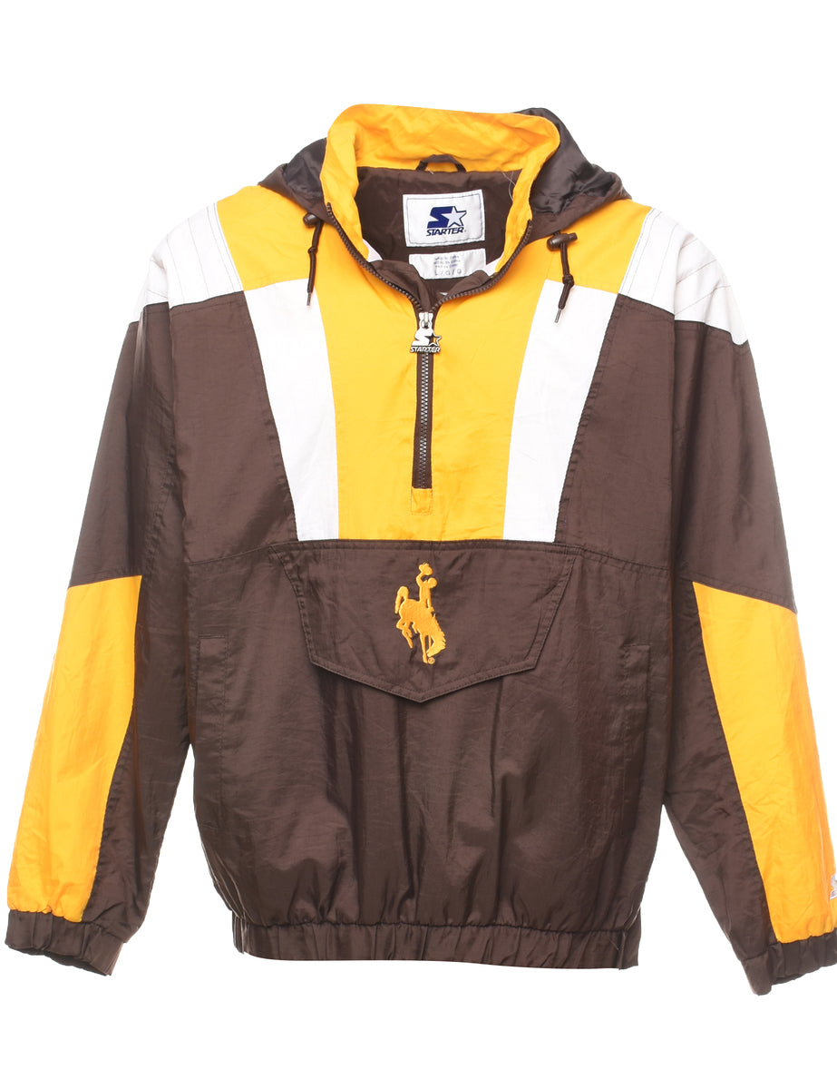 Quarter-zip brown, white & orange Starter embroidered nylon jacket complete with full lining and multiple pockets.