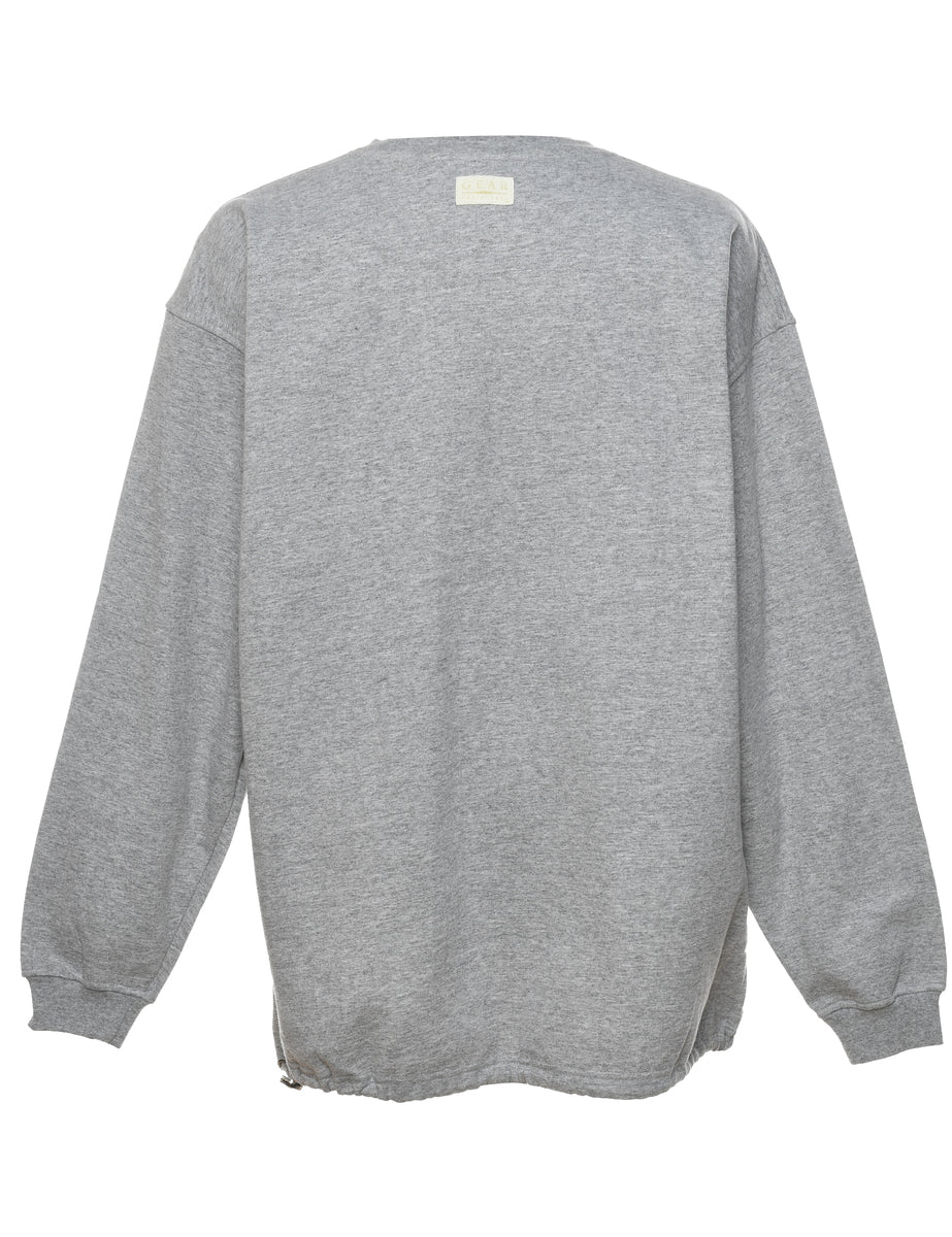Grey college design printed sweatshirt complete with ribbed cuffs and waistband.