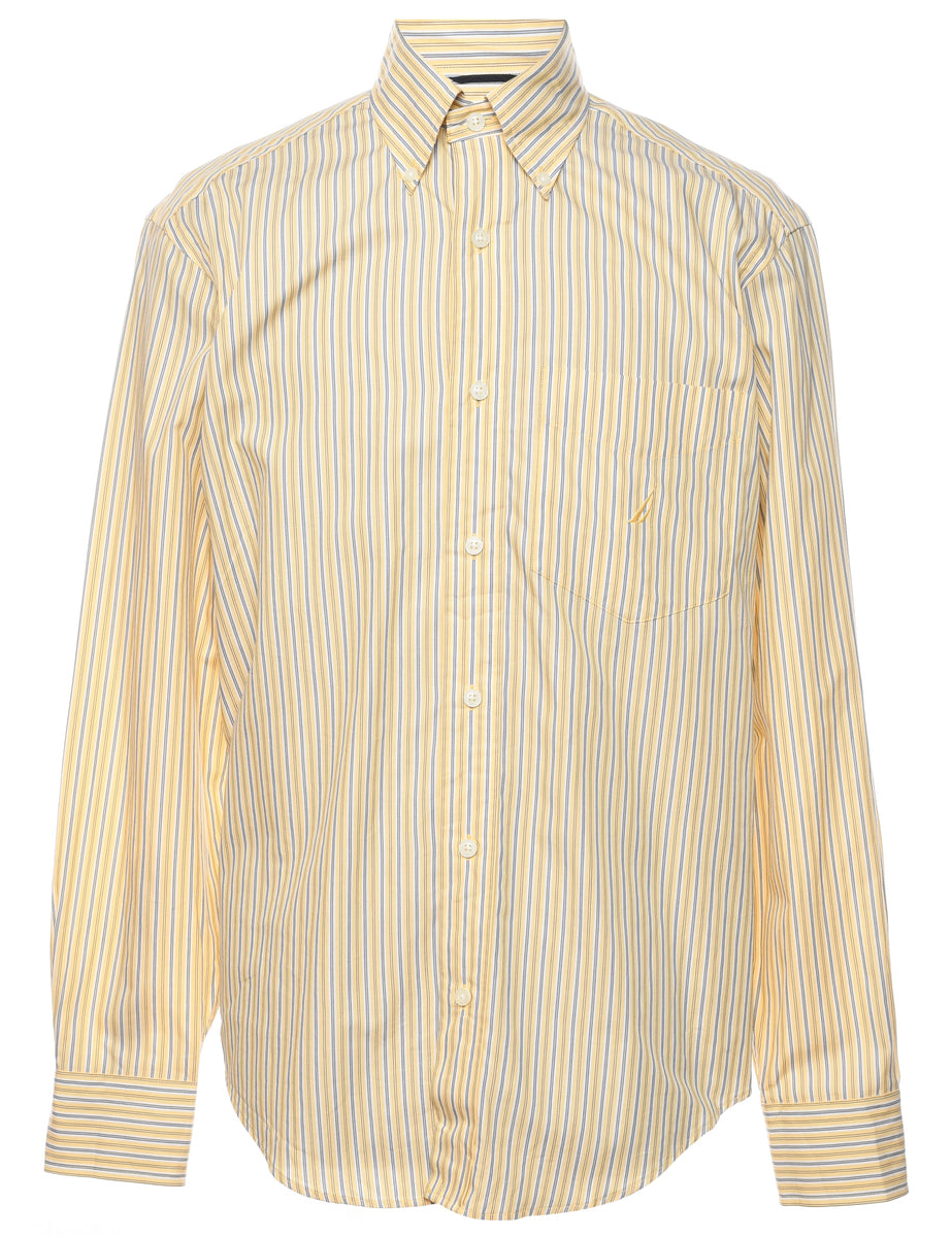 Vintage Nautica Light Grey & Pale Yellow Striped Shirt - S