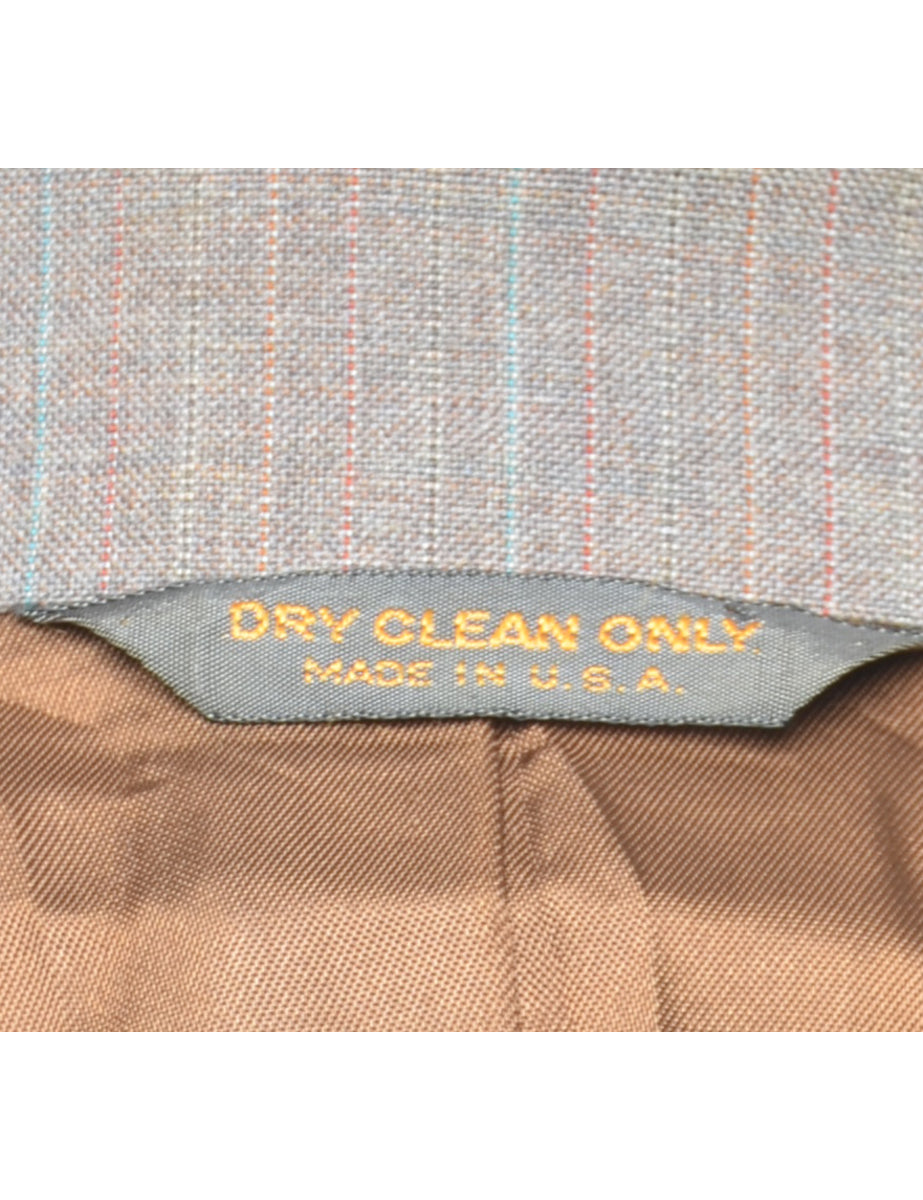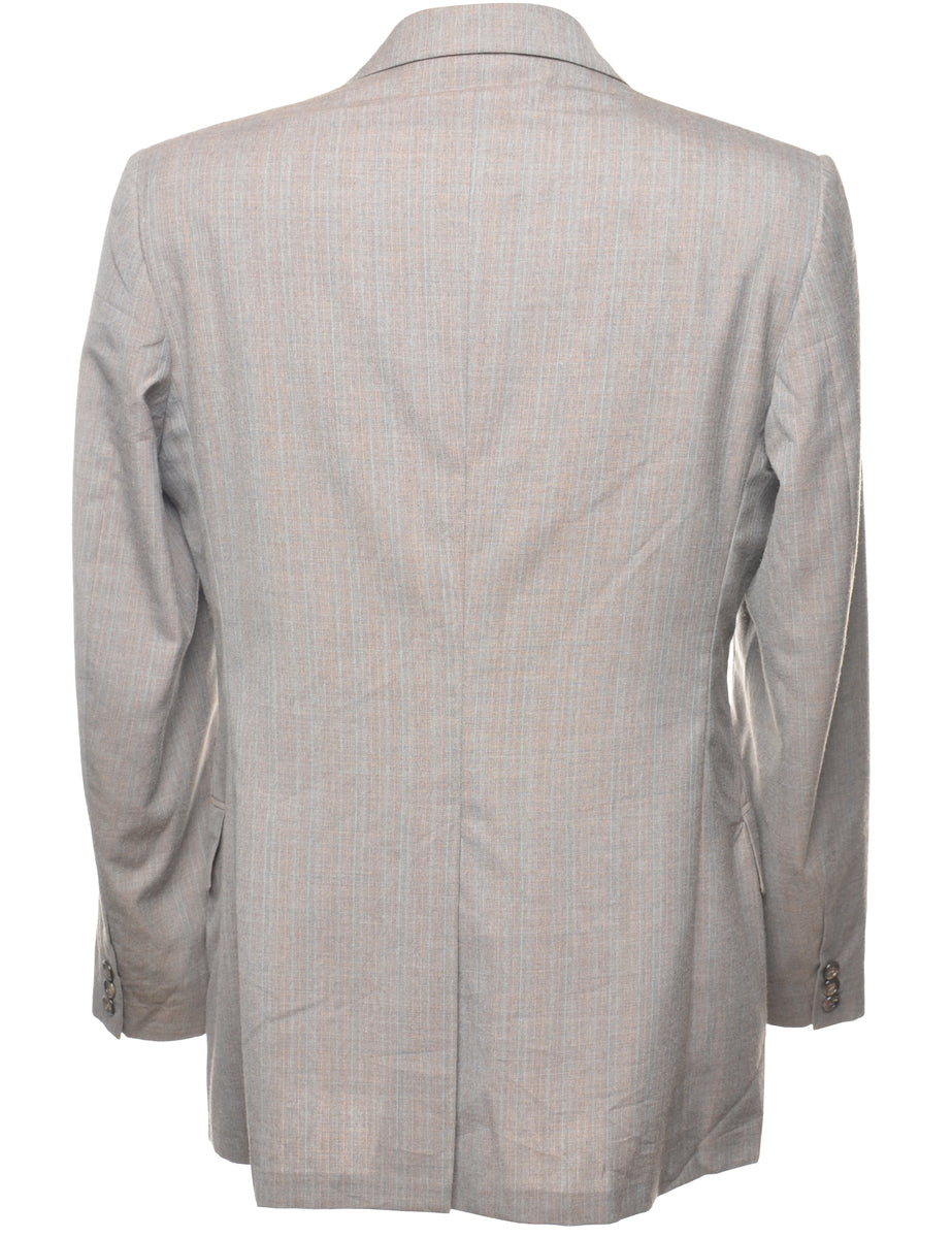 Pinstriped grey blazer with full lining and built in shoulder pads.