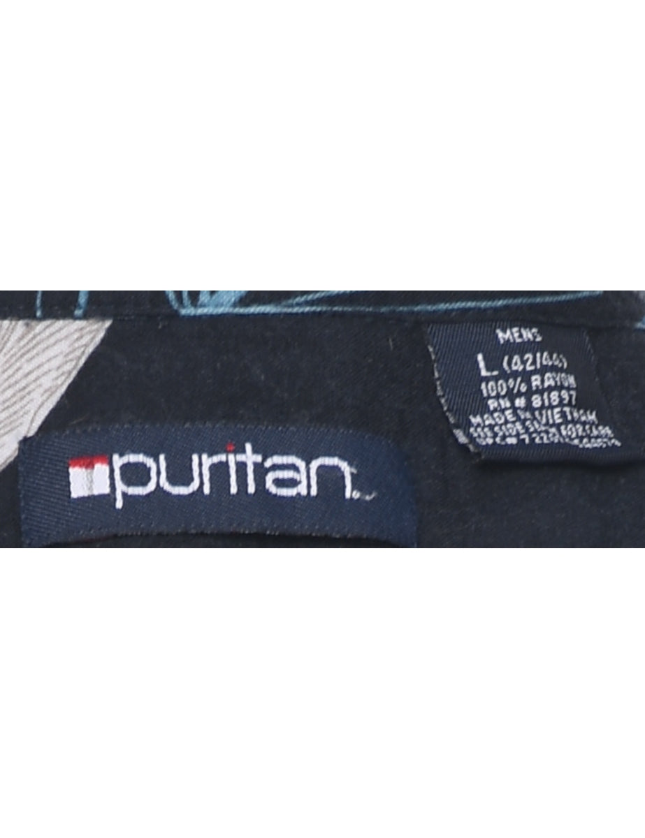 Foliage hawaiian shirt in black with a classic collar and one pocket. From the brand Puritan.