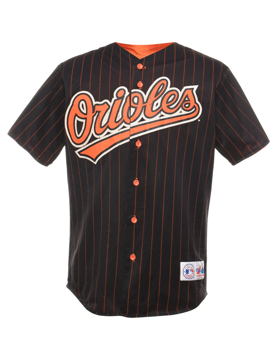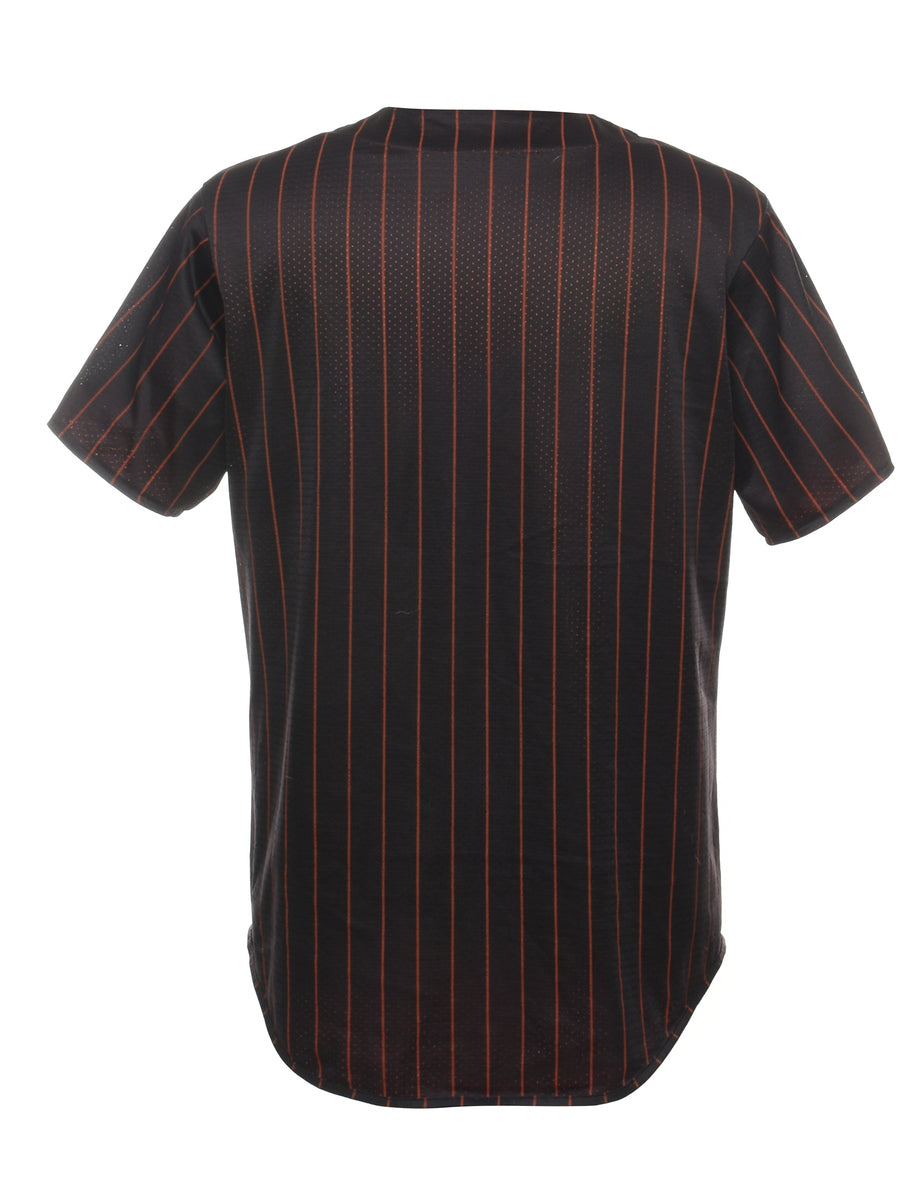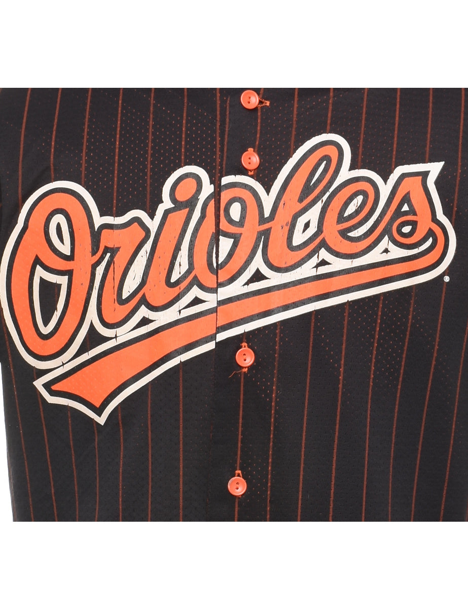 Vintage Striped Orange & Black Orioles Button-Front Sports T-Shirt - M