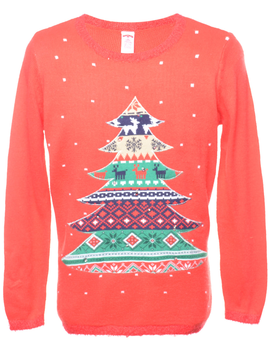 Festive season christmas jumper. Comes in red with a round neck and embroidery.