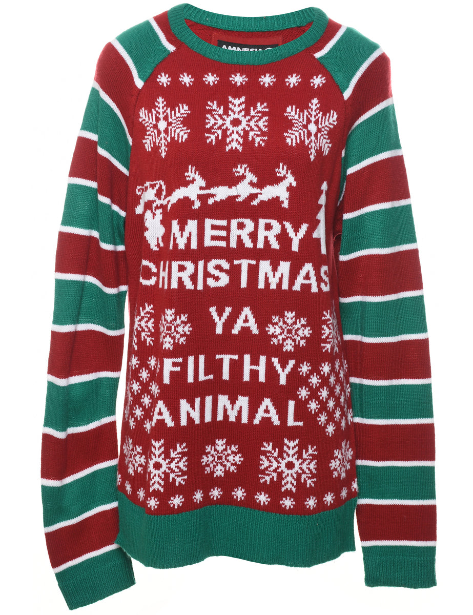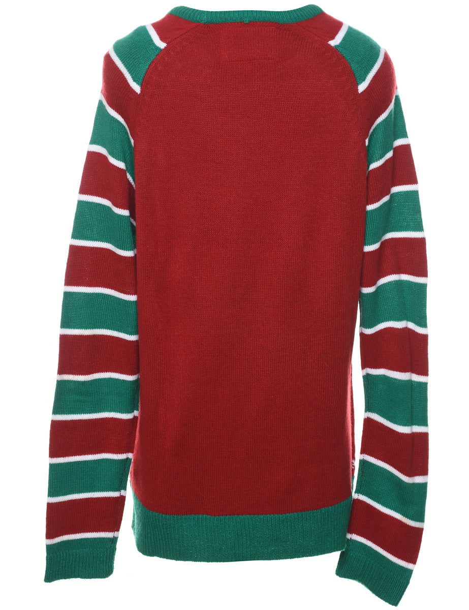 Festive season christmas jumper. Comes in red with raglan sleeves.