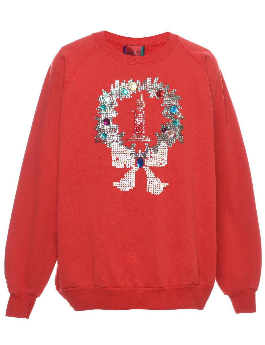 Festive season christmas sweatshirt in red with sequins and raglan sleeves.