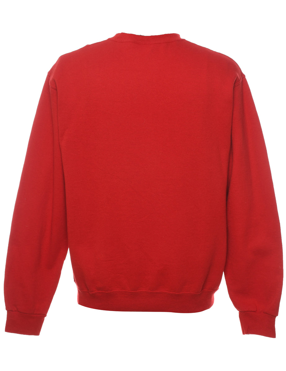 Christmas sweatshirt in red with a ribbed neck and cuffs.