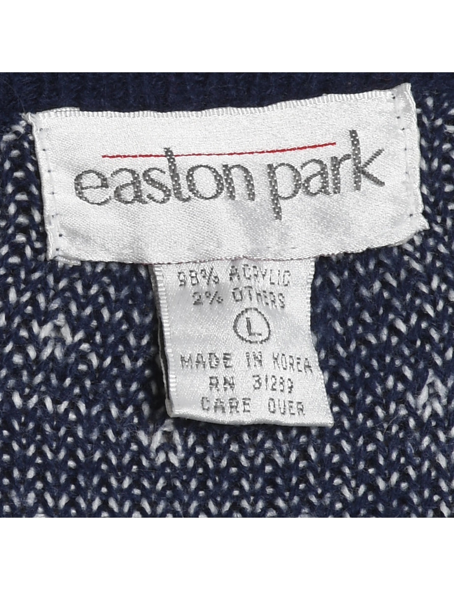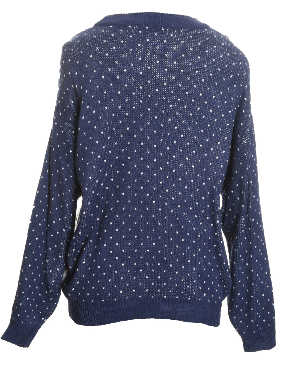 Santa claus christmas jumper in navy with a round neck and an applique design.