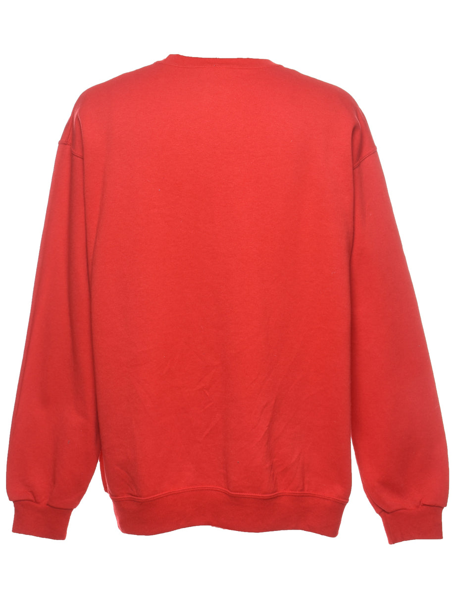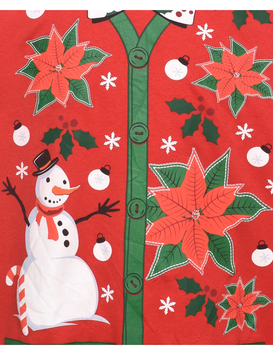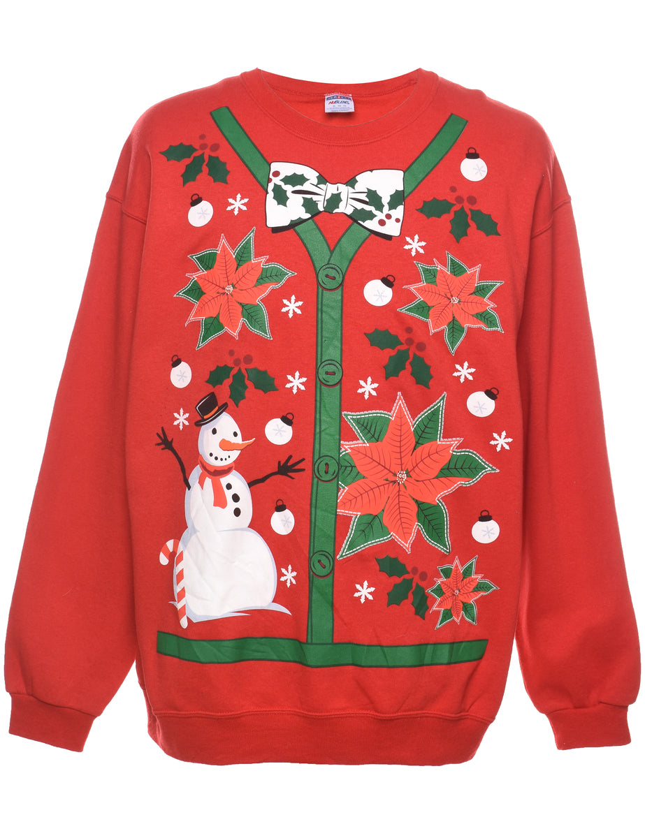 Snowman christmas sweatshirt in red with a round neck and a drop shoulder.