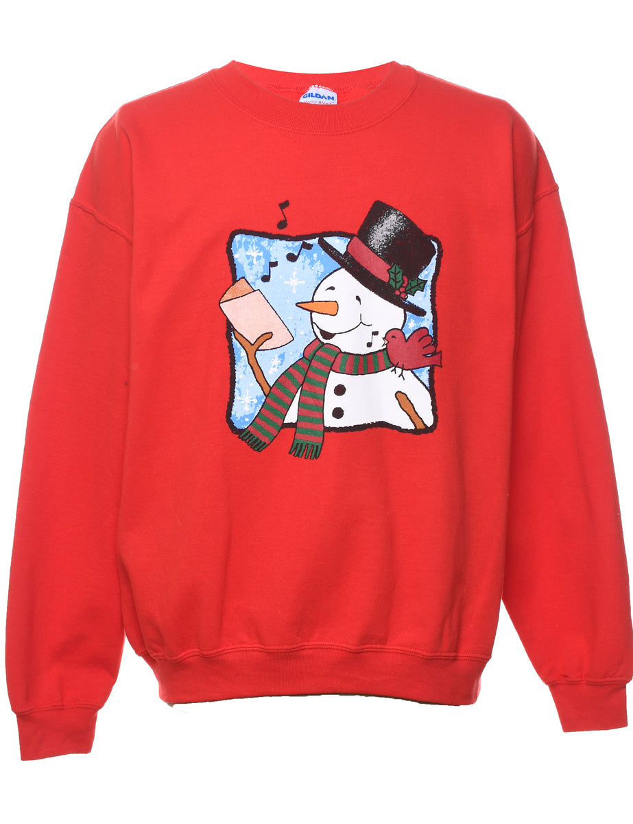 Snowman Christmas sweatshirt in red complete with a drop shoulder.