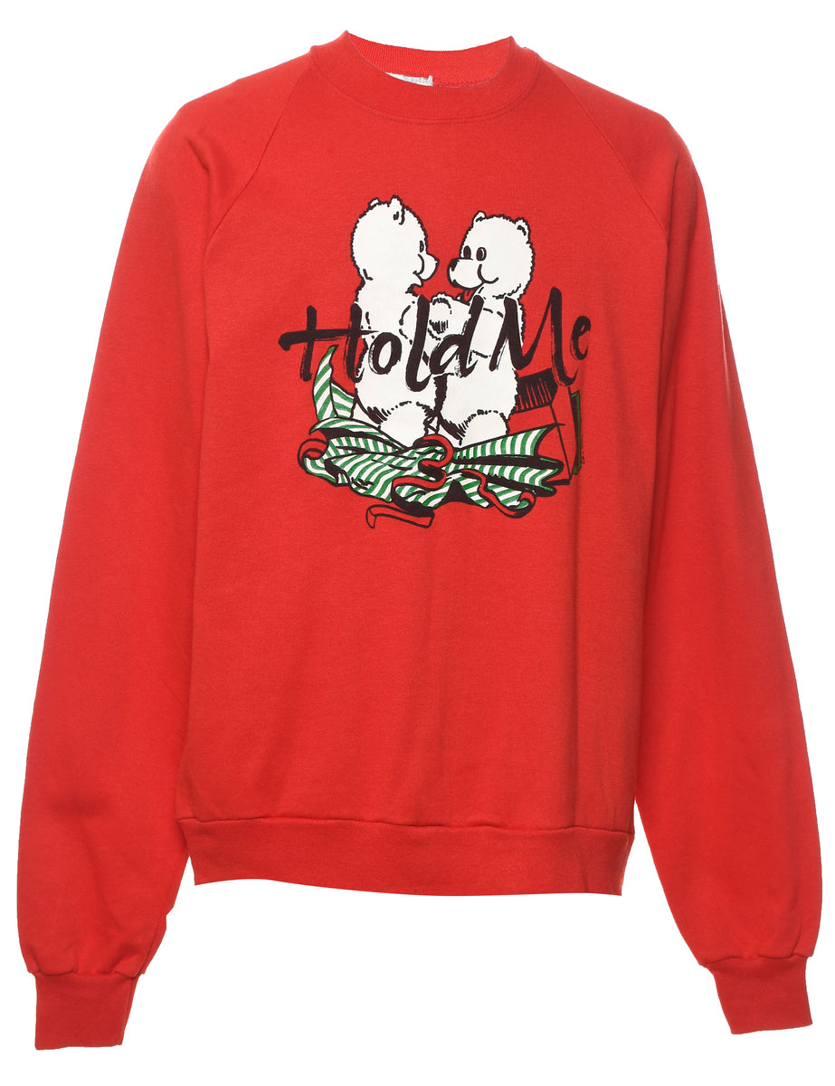 Teddy Bear Design Red Printed Christmas Jumper - XL