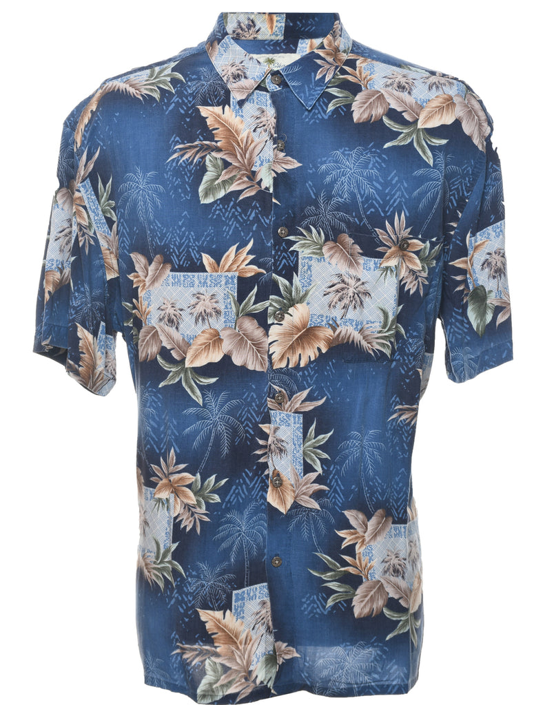 Floral hawaiian shirt in navy with a classic collar and one pocket.