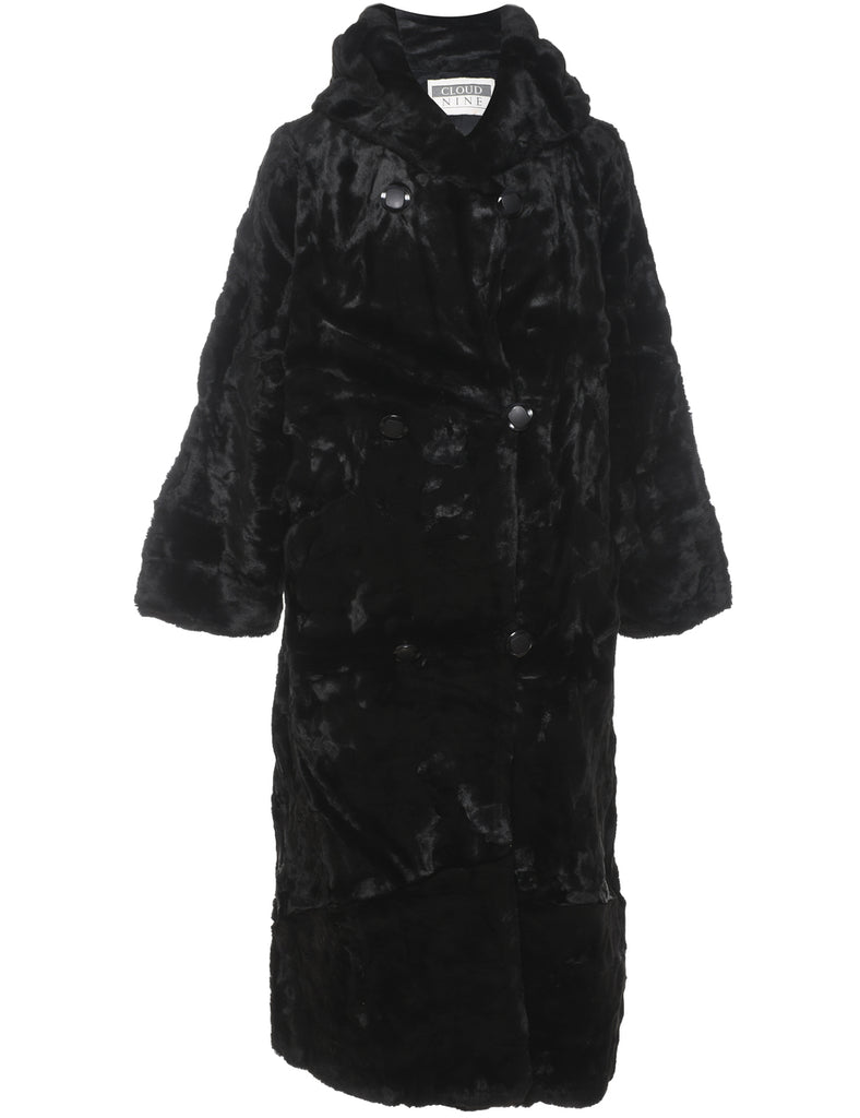 Vintage Double Breasted Long Black Faux Fur Coat - L