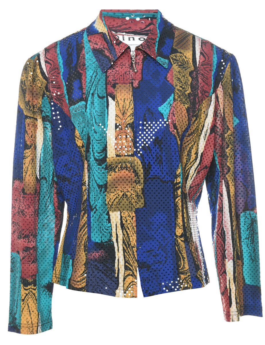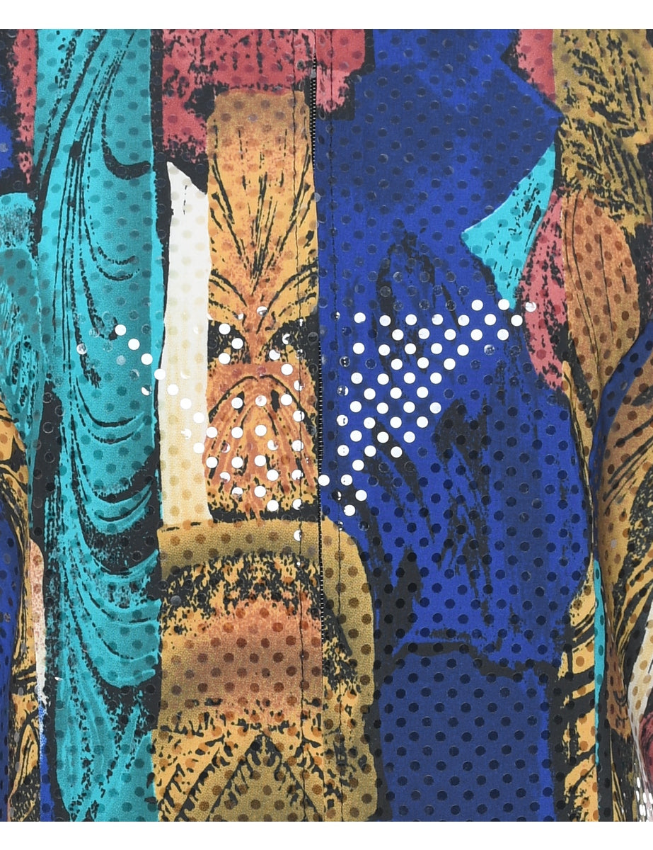 Vintage Abstract Pattern Sparkly Multi-Colour Evening Jacket - L