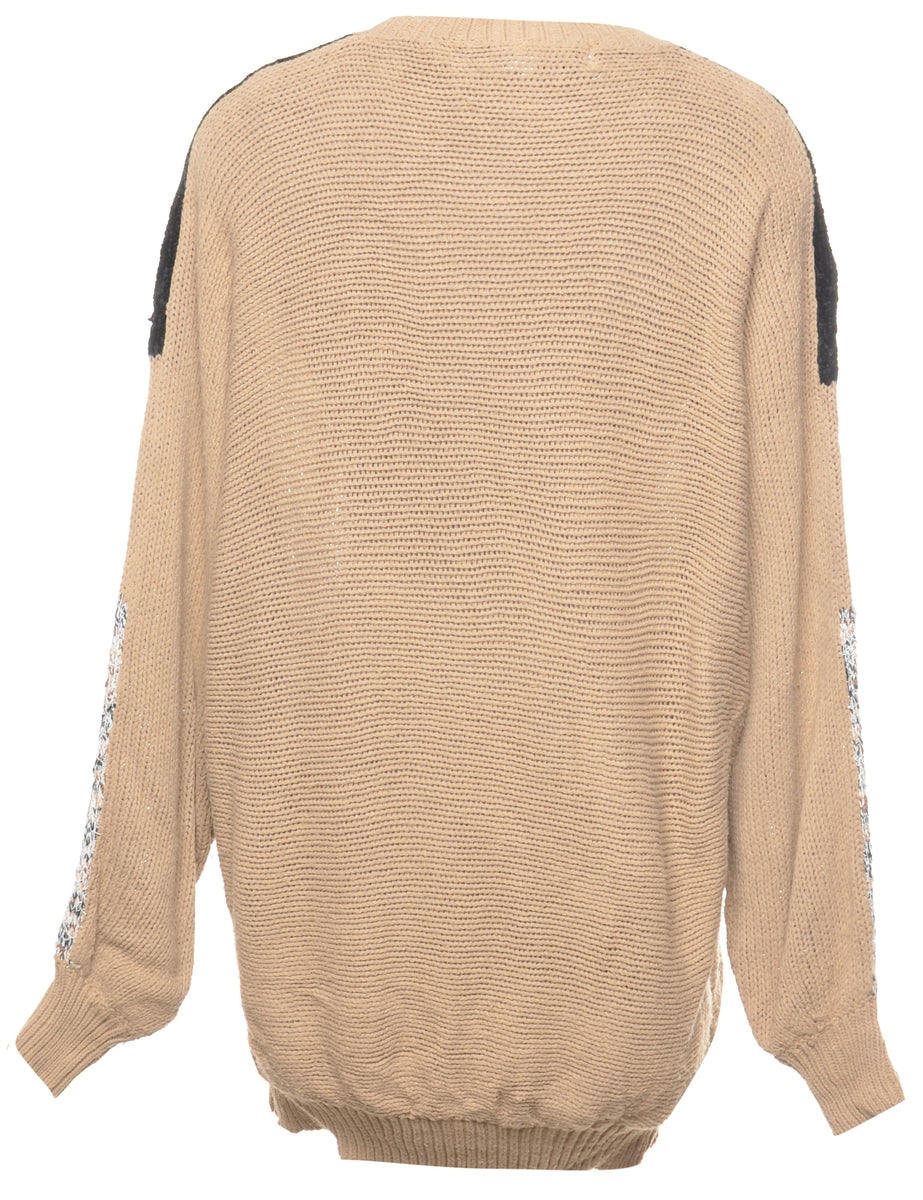 Colour block jumper in multi-colour with a crew neck and batwing sleeves.