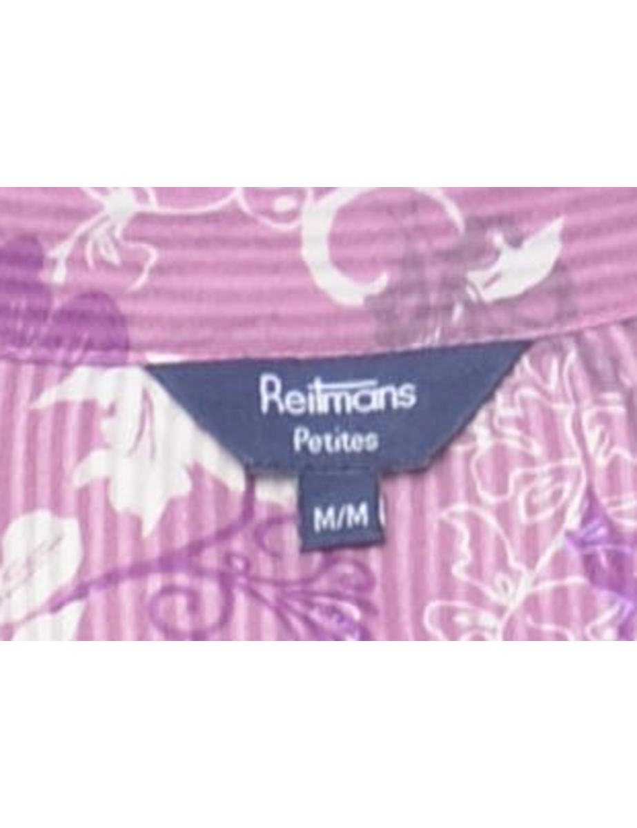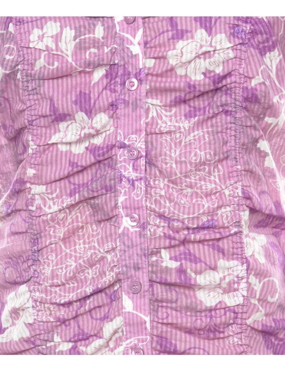 Floral blouse. Comes in purple with ruched detailing. The size label mentions M but based on the actual measurements we consider it a size S.