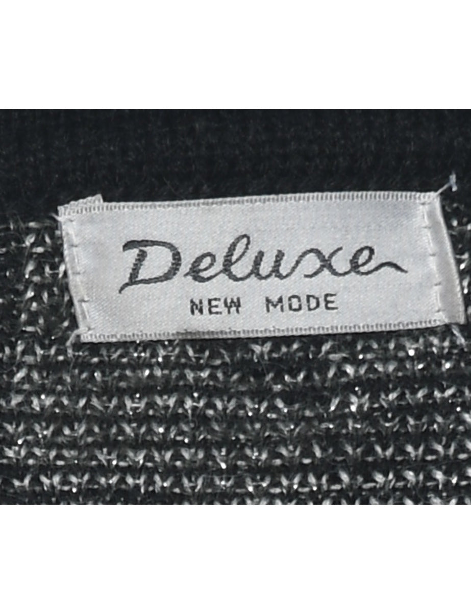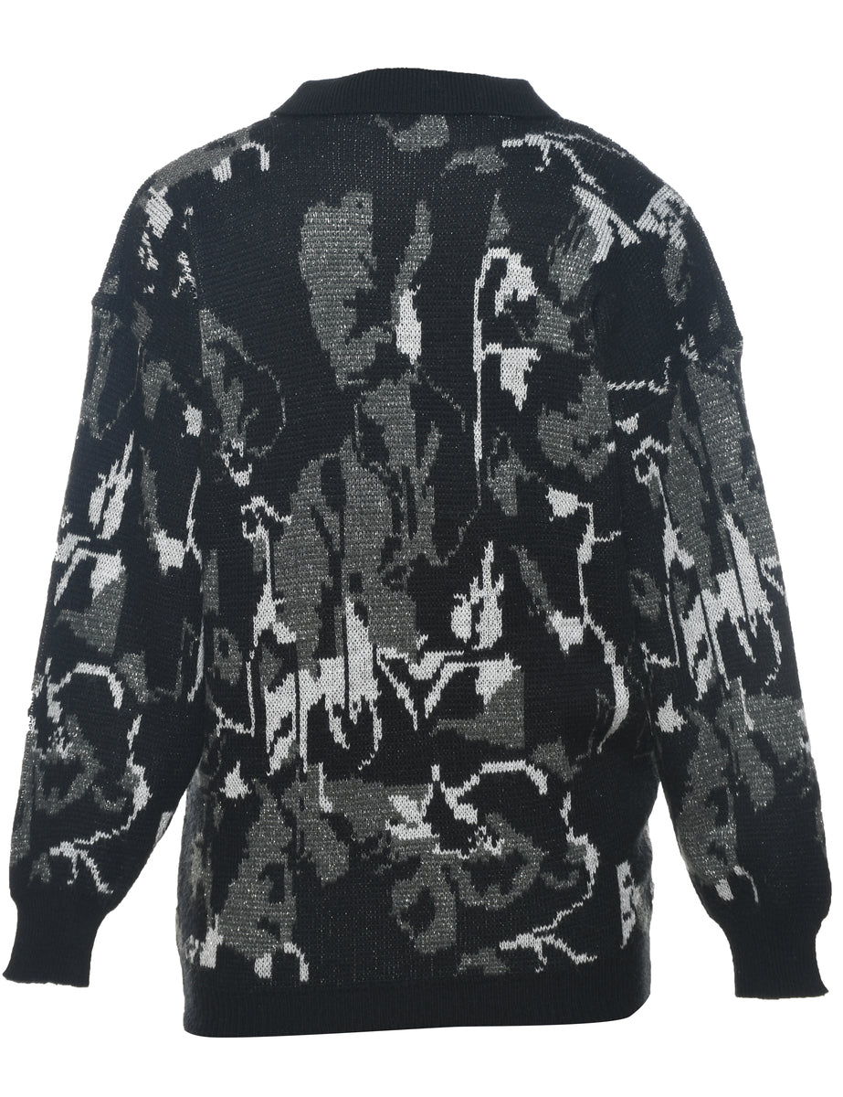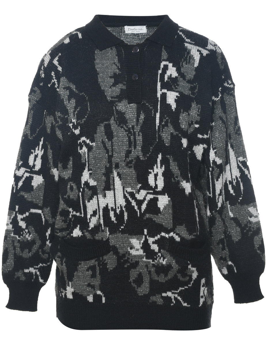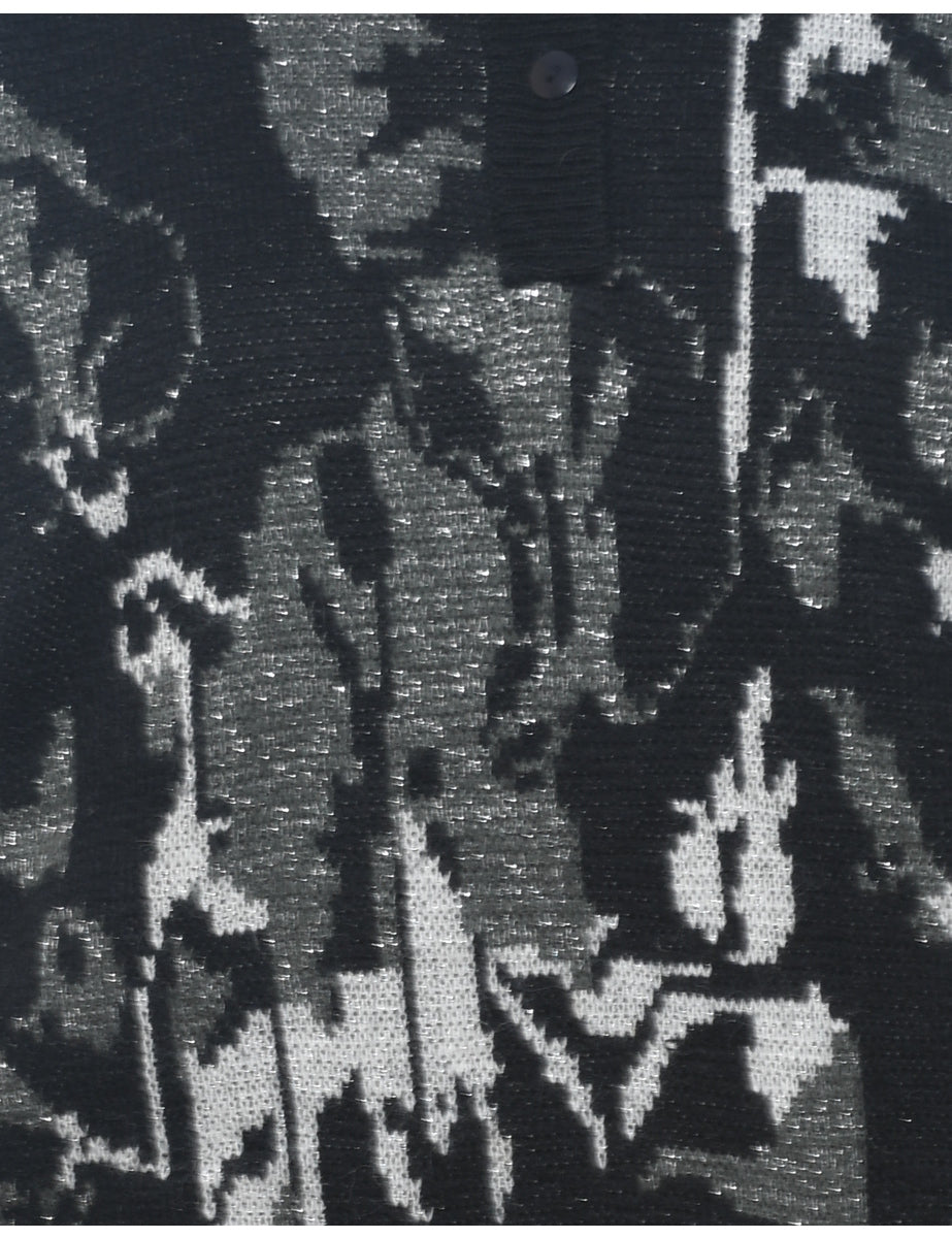 Patterned jumper with lurex thread pattern. Comes in black with a classic collar and a drop shoulder.