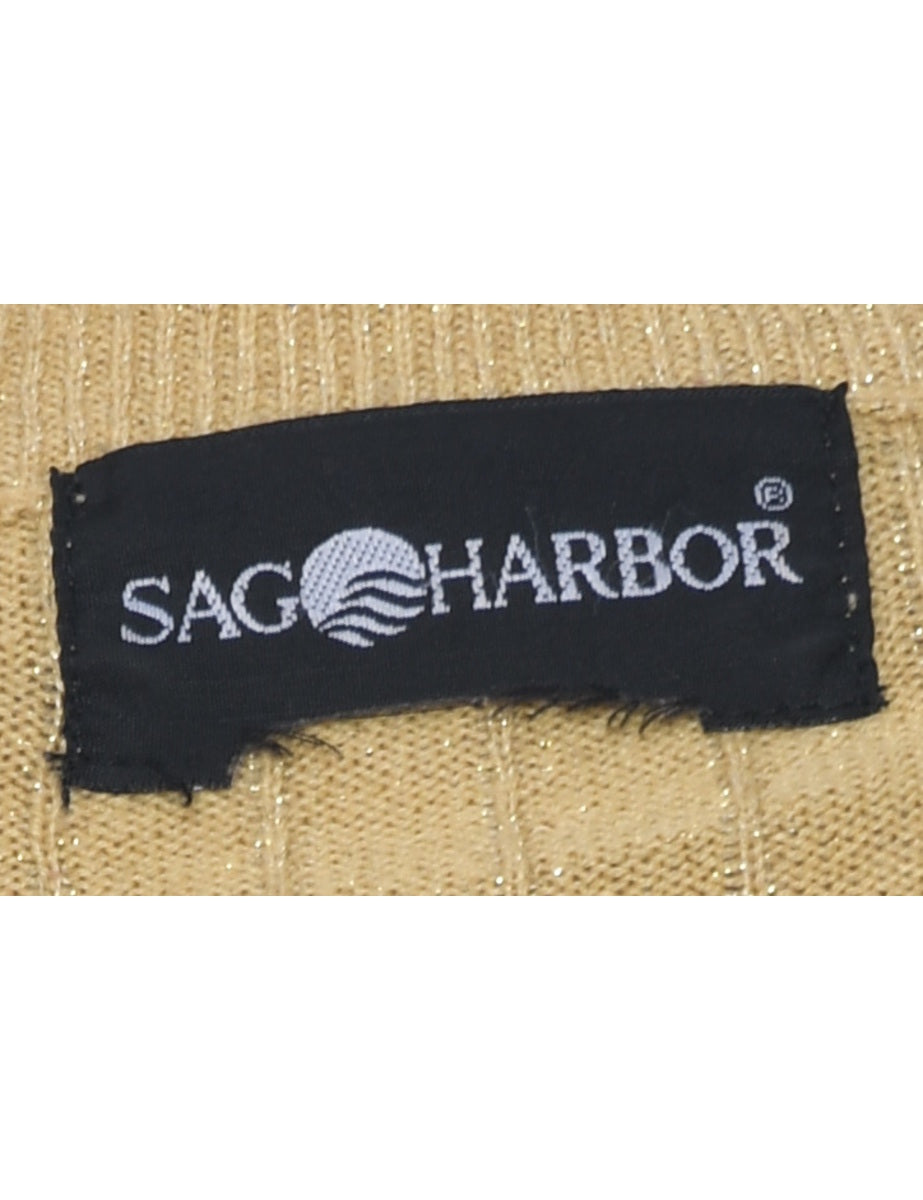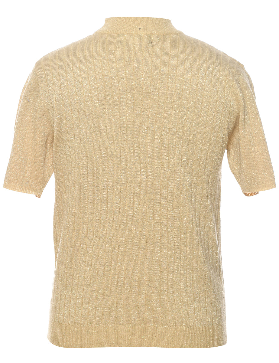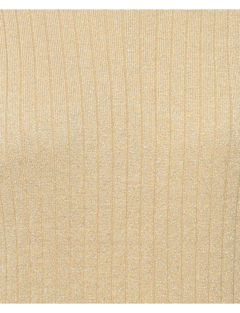 Lurex thread pattern jumper comes in gold with a crew neck.