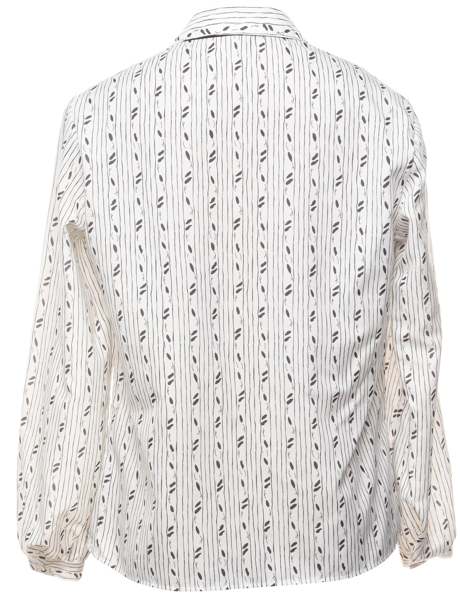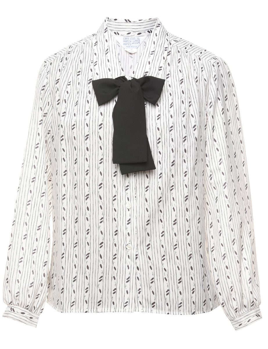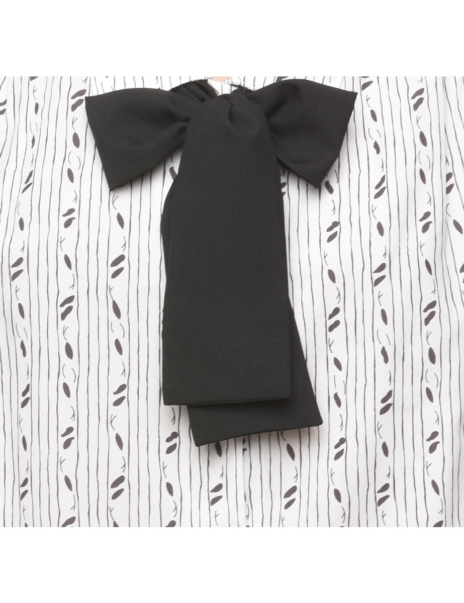 Striped blouse in black & white with a classic collar and a pussy bow.
