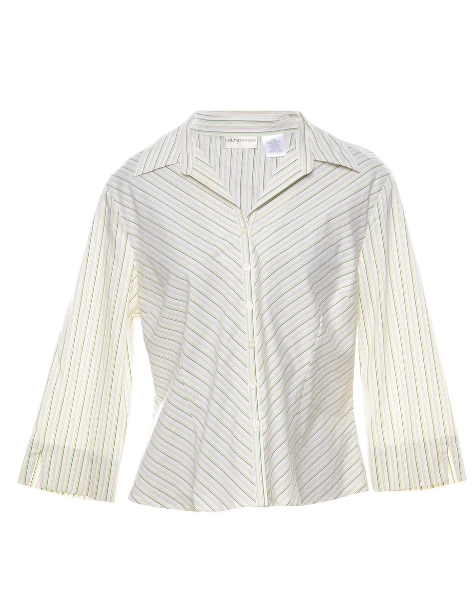 Striped blouse in multi-colour. The size label mentions L but based on the actual measurements we consider it a size M.