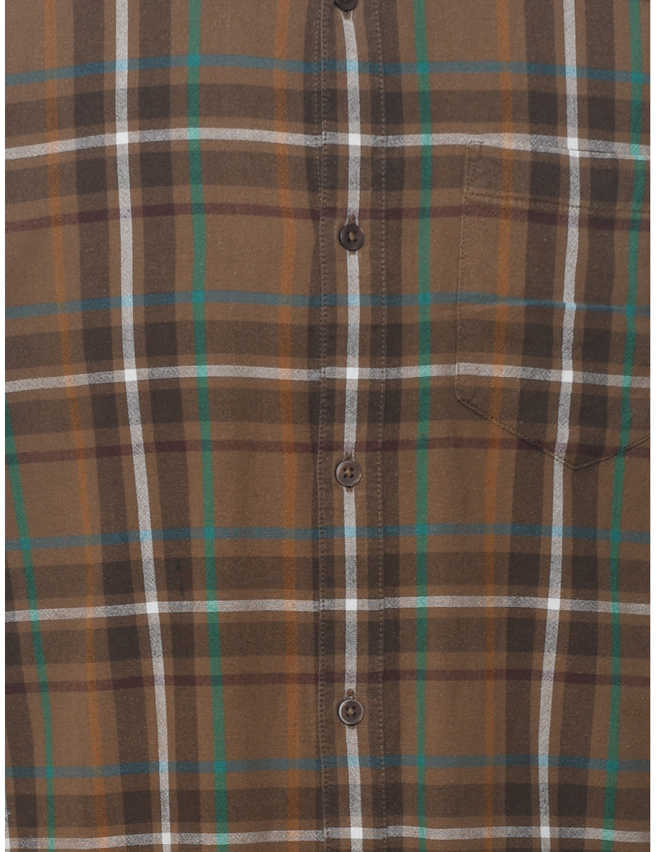 Long sleeved brown Vans checked shirt with a classic collar and one pocket.