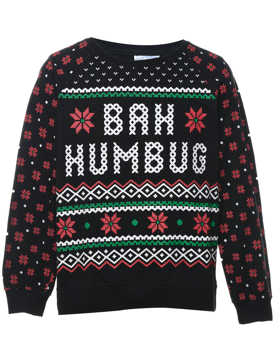 Vintage Nordic Knit Black, Green & Red Christmas Sweatshirt - M