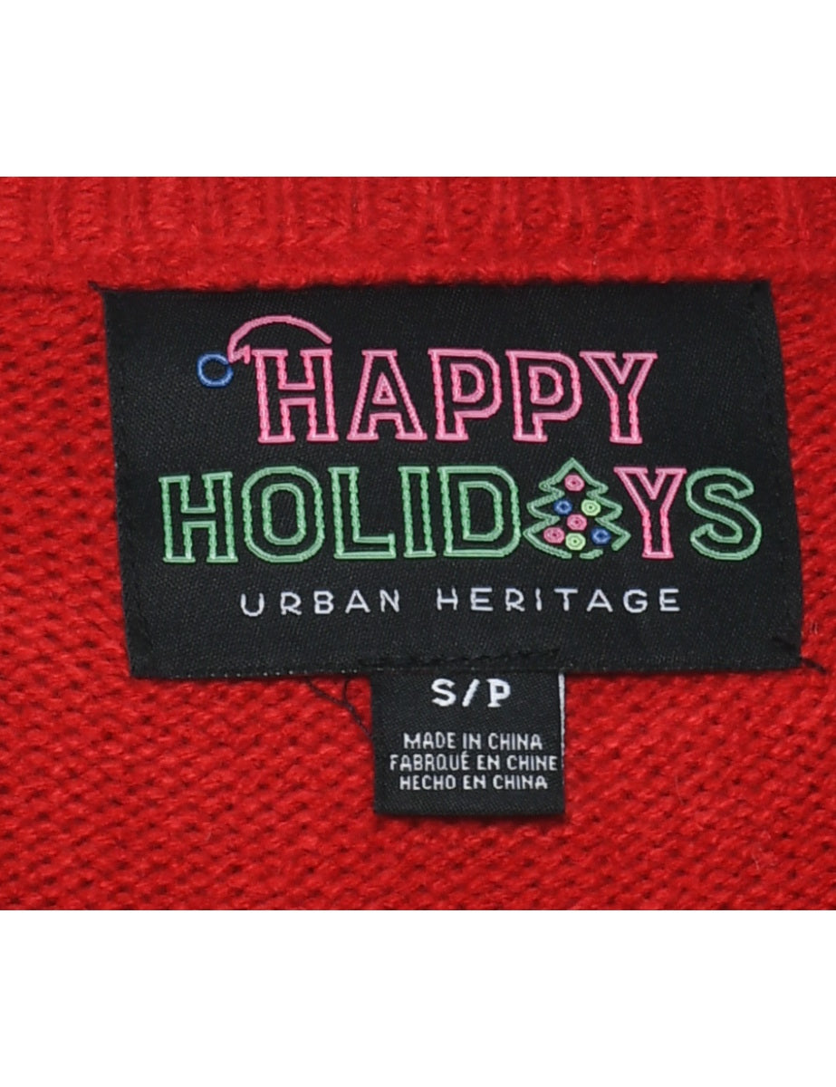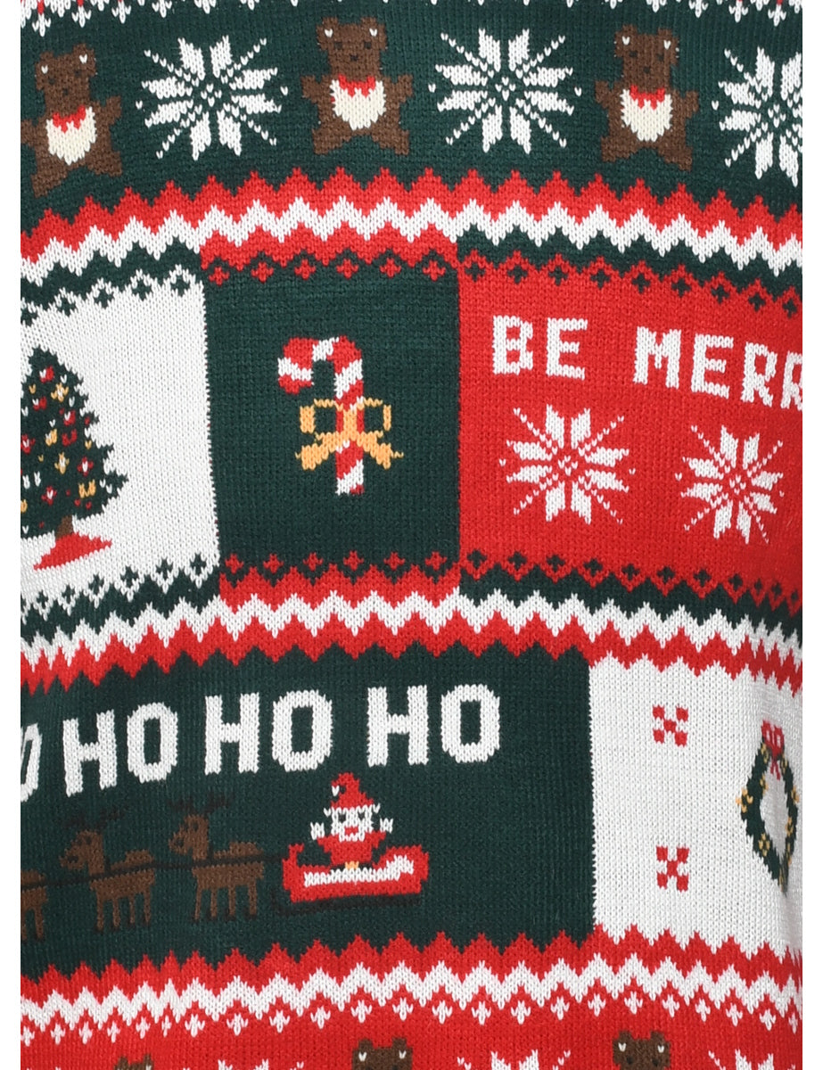 Festive season christmas jumper with nordic print comes in red with a round neck.