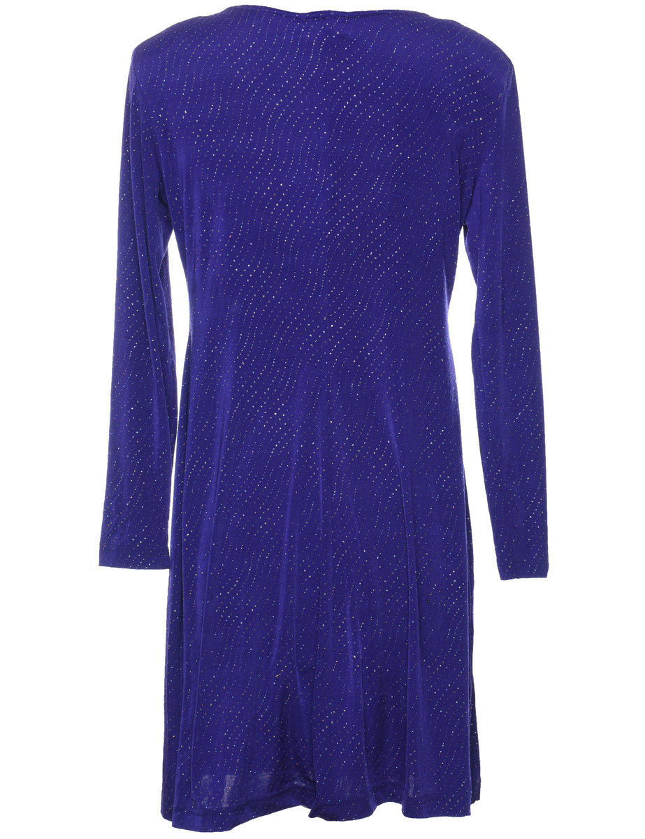 Vintage Metallic Purple Long-Sleeve Evening Dress - M