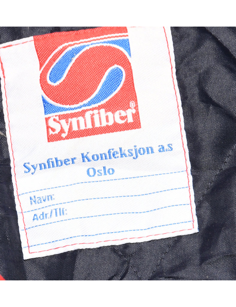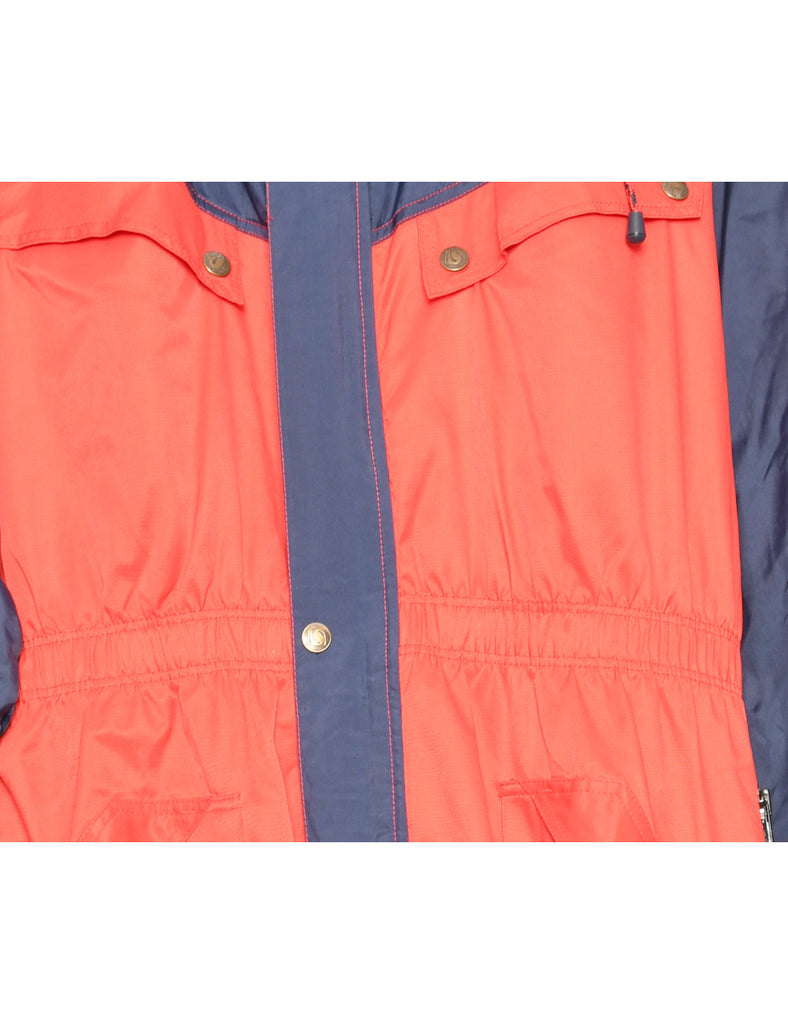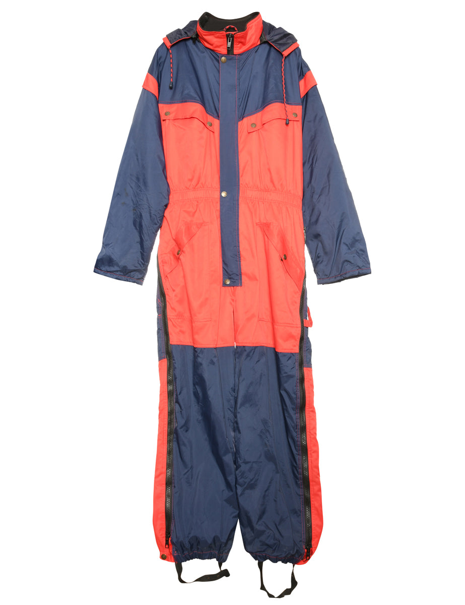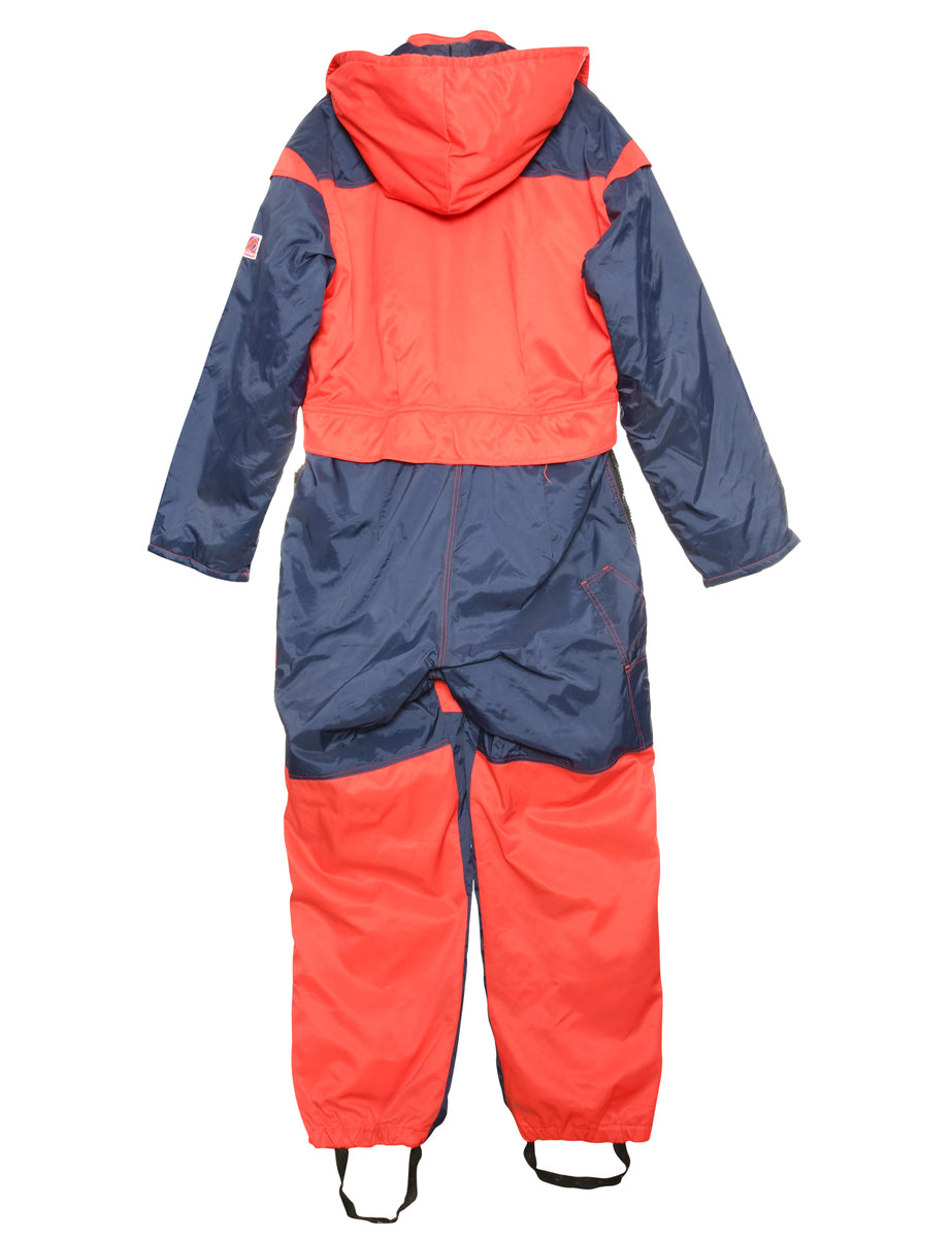 Front zipper boiler suit in red & blue with full lining and flap pockets.