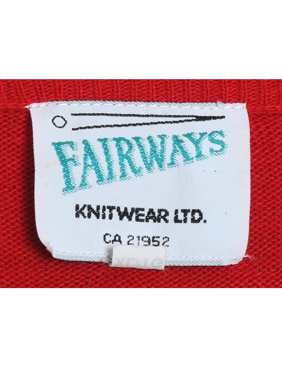 Festive print christmas jumper in red with a v-neck and an applique design.