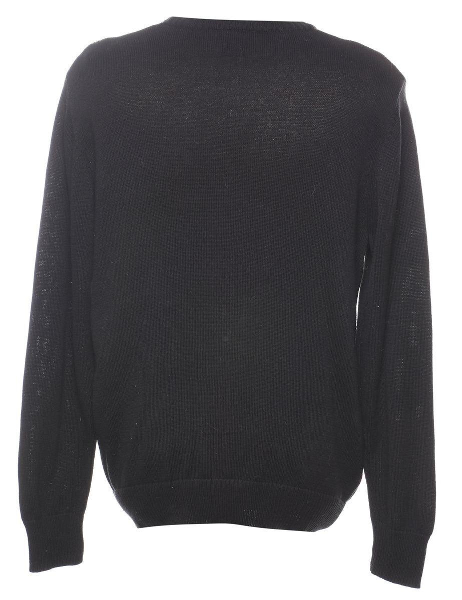 Festive season christmas jumper. Comes in black with patchwork applique.