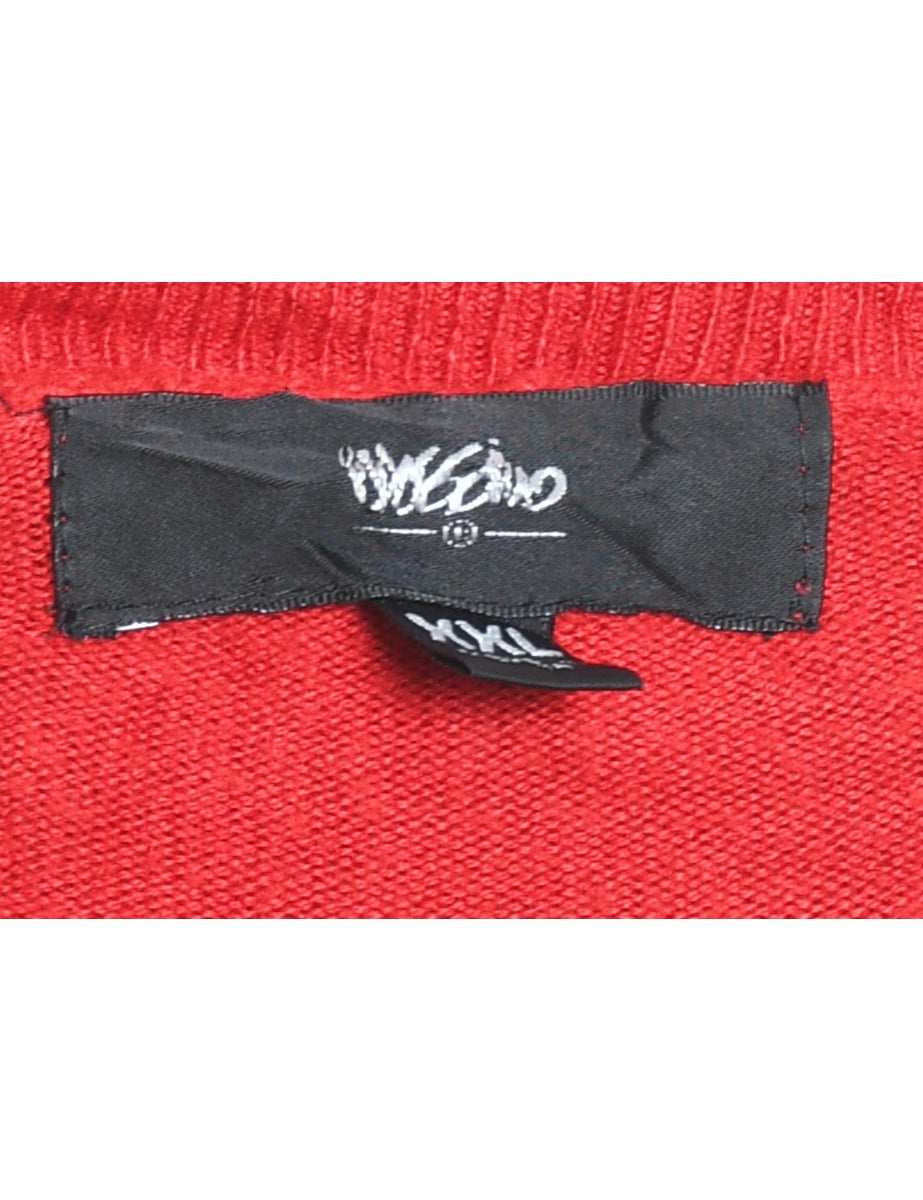 Festive print christmas jumper. Comes in red with a v-neck and an applique design.
