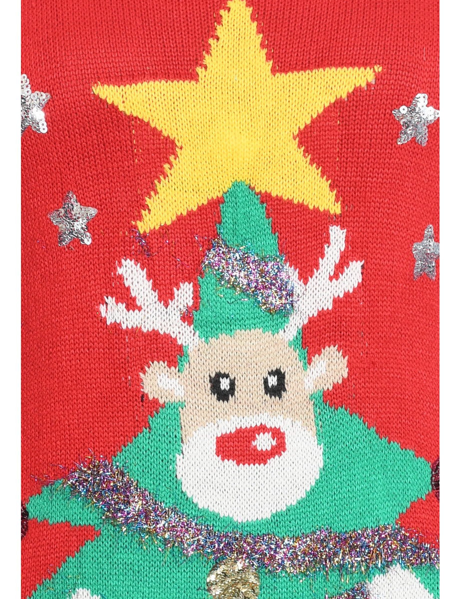 Red reindeer design Christmas jumper complete with a round neck and sequins.