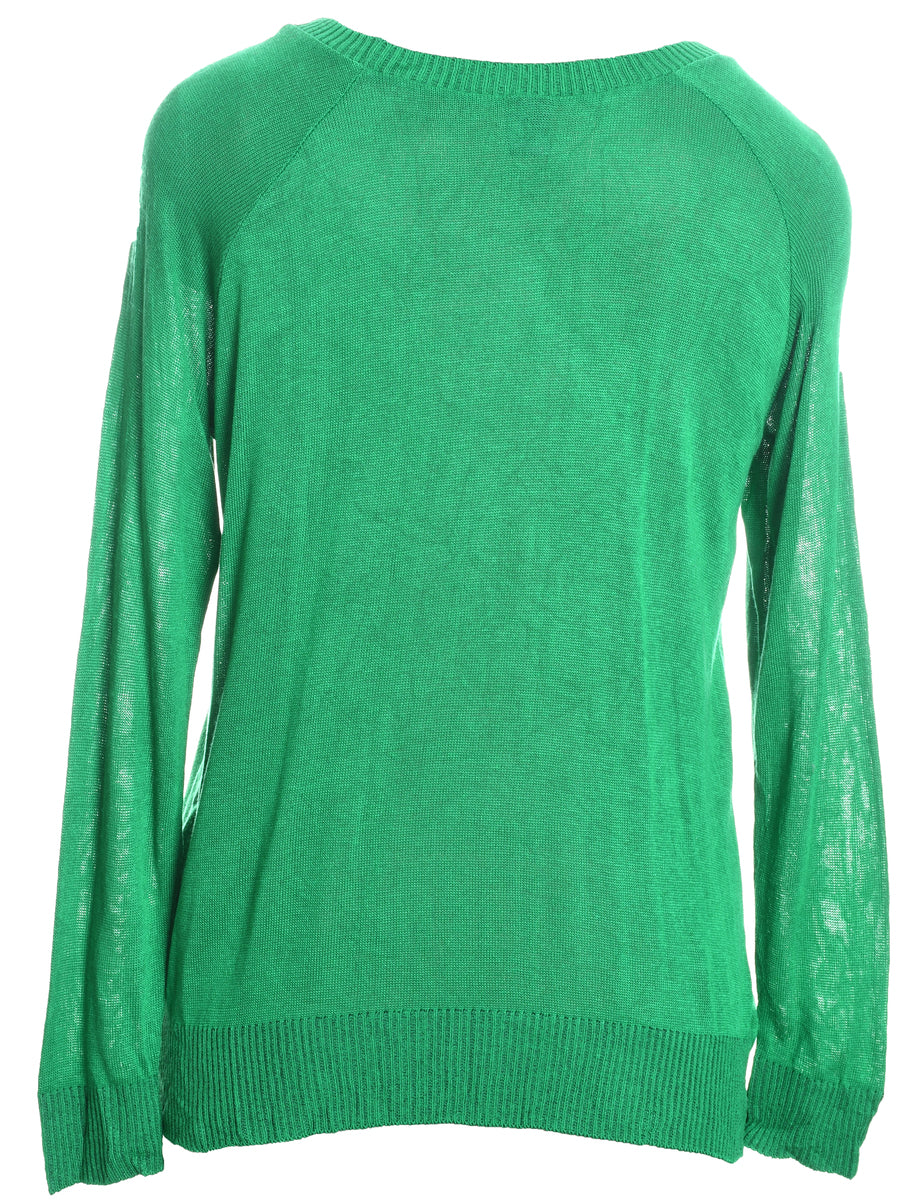 Reindeer christmas jumper comes in green with raglan sleeves.