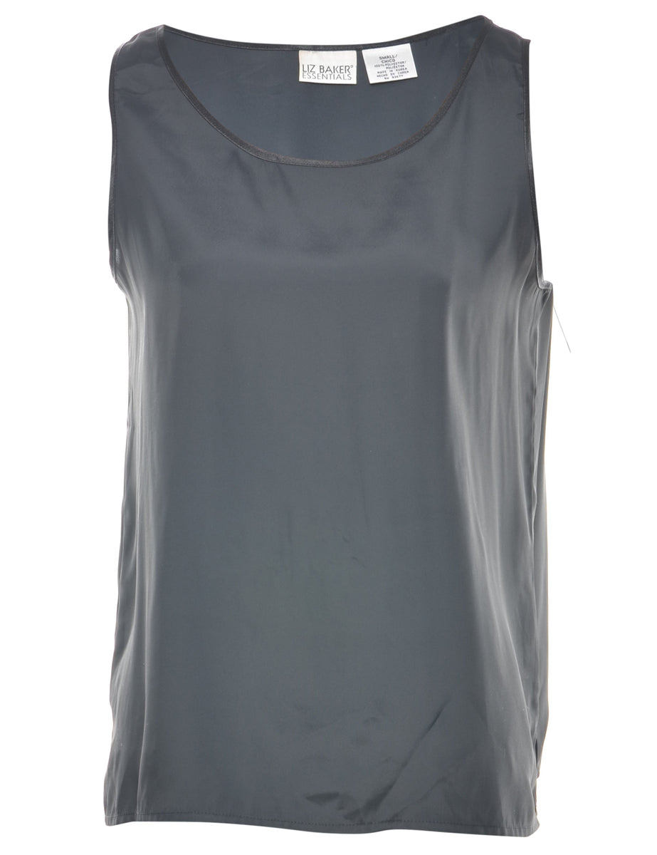 Sleeveless top in black with a round neck.