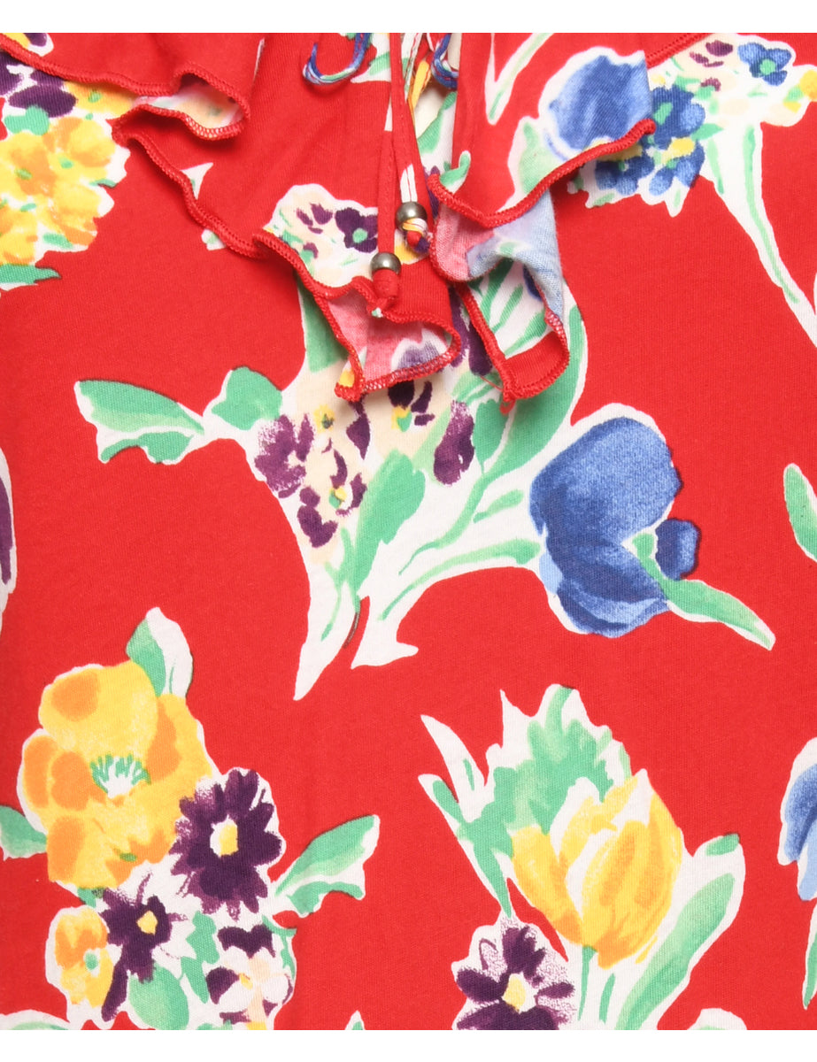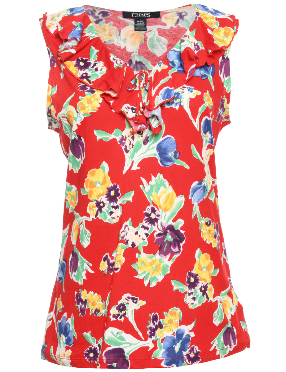 Chaps floral blouse comes in red with a frilled neck.