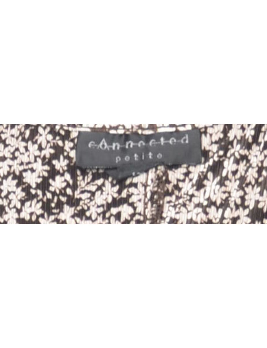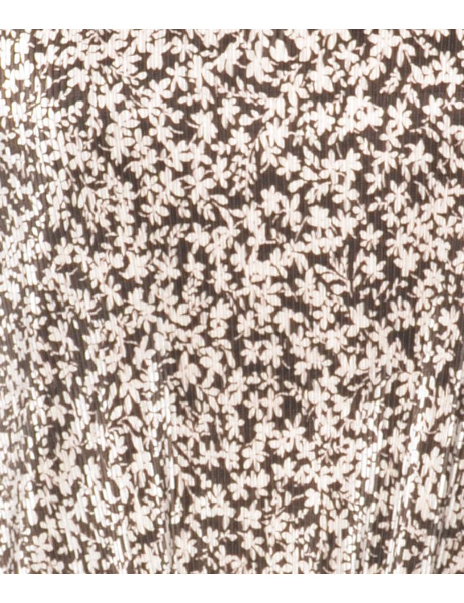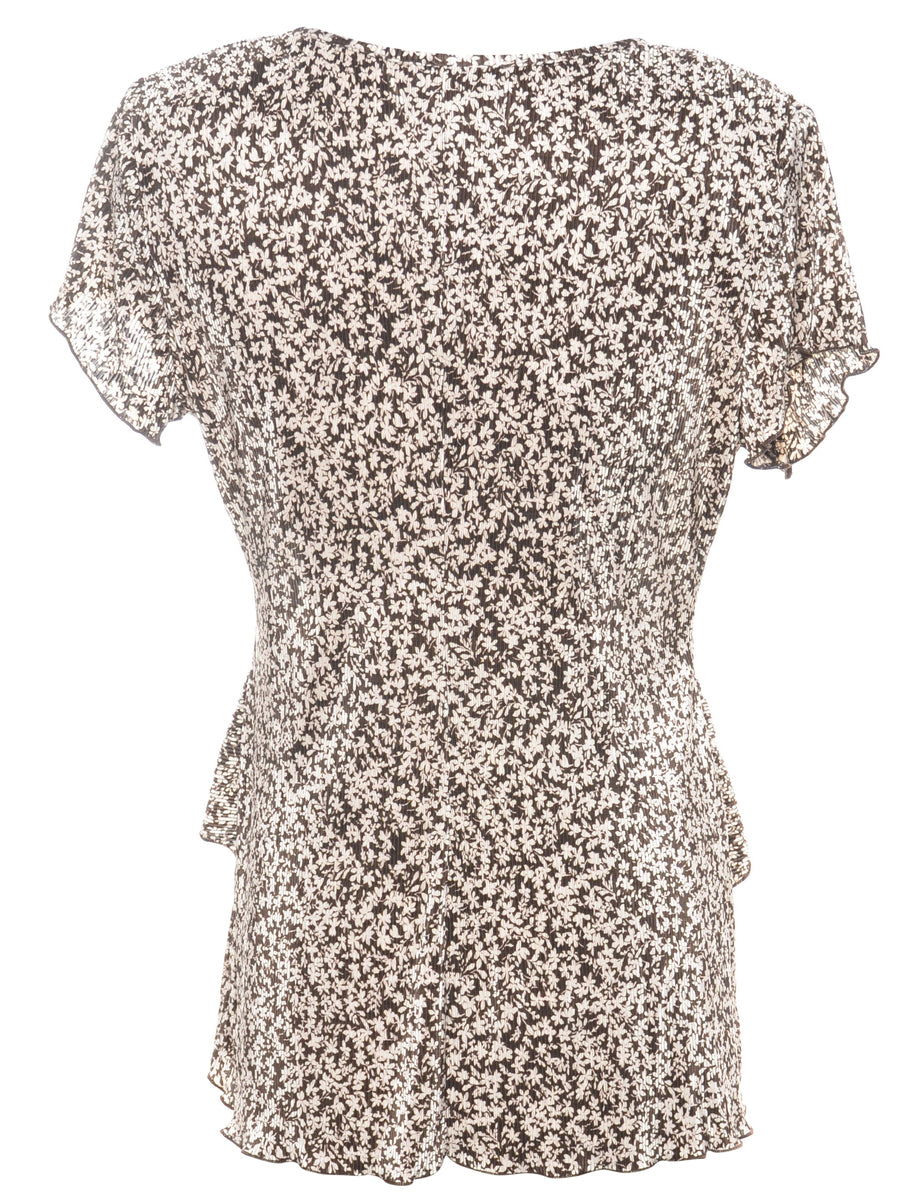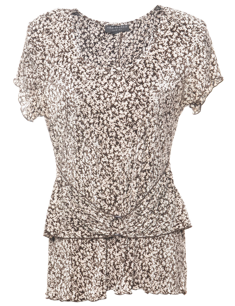 Floral top in dark brown with removable shoulder pads.