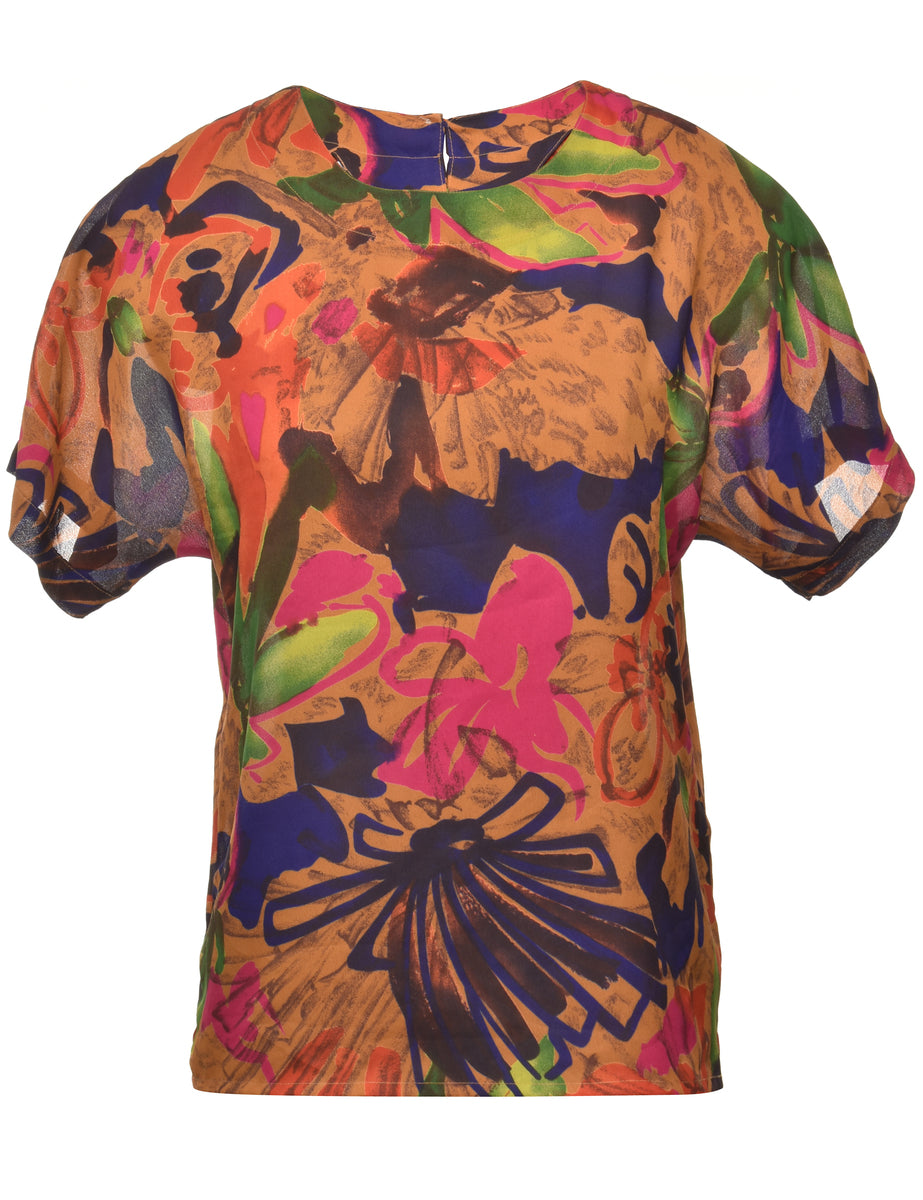 Vintage Short Sleeve Printed Top - S