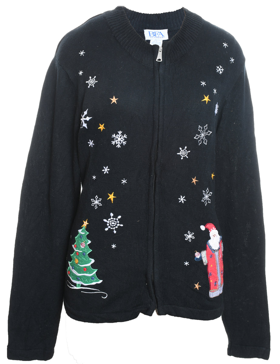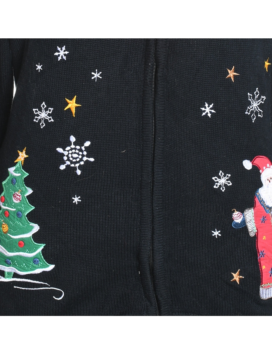 Santa claus christmas cardigan. Comes in black with embroidery and an applique design.