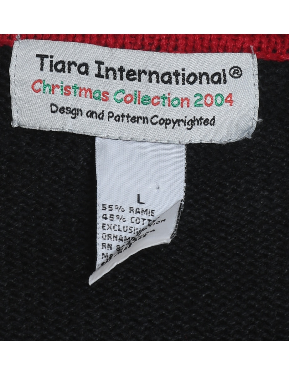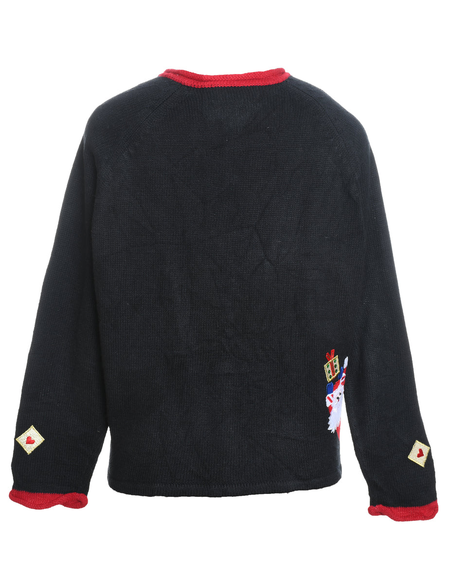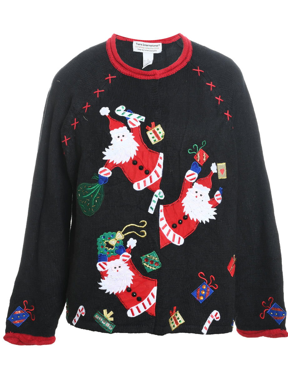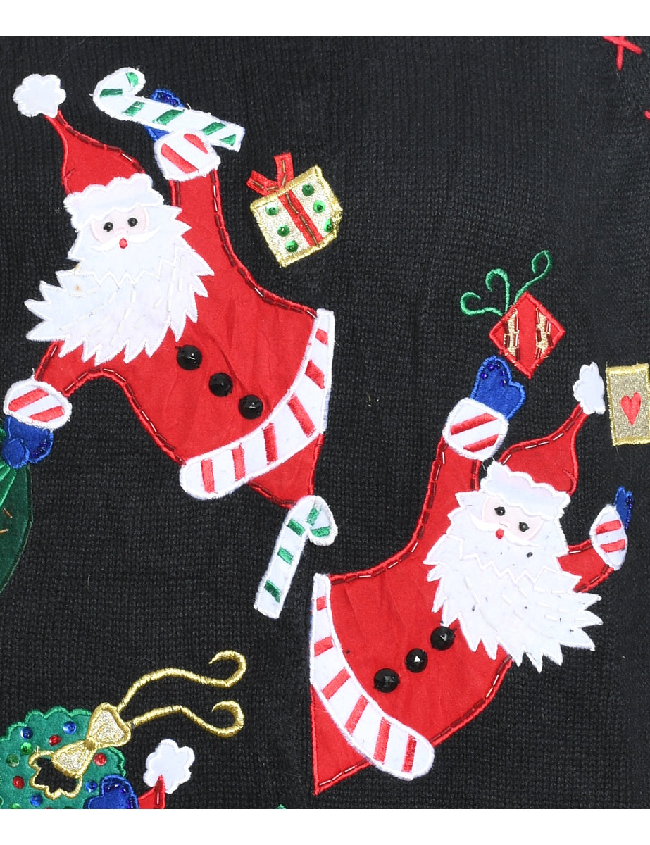Santa Claus design black Christmas appliqued jumper.