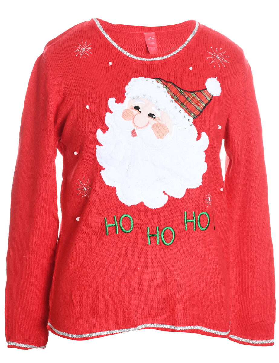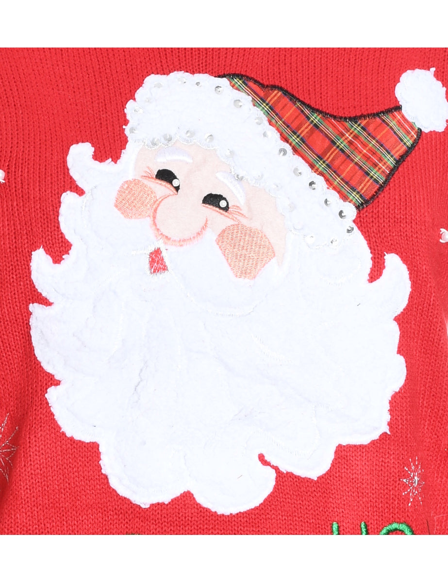 Santa claus christmas jumper. Comes in red with an applique design and beading.