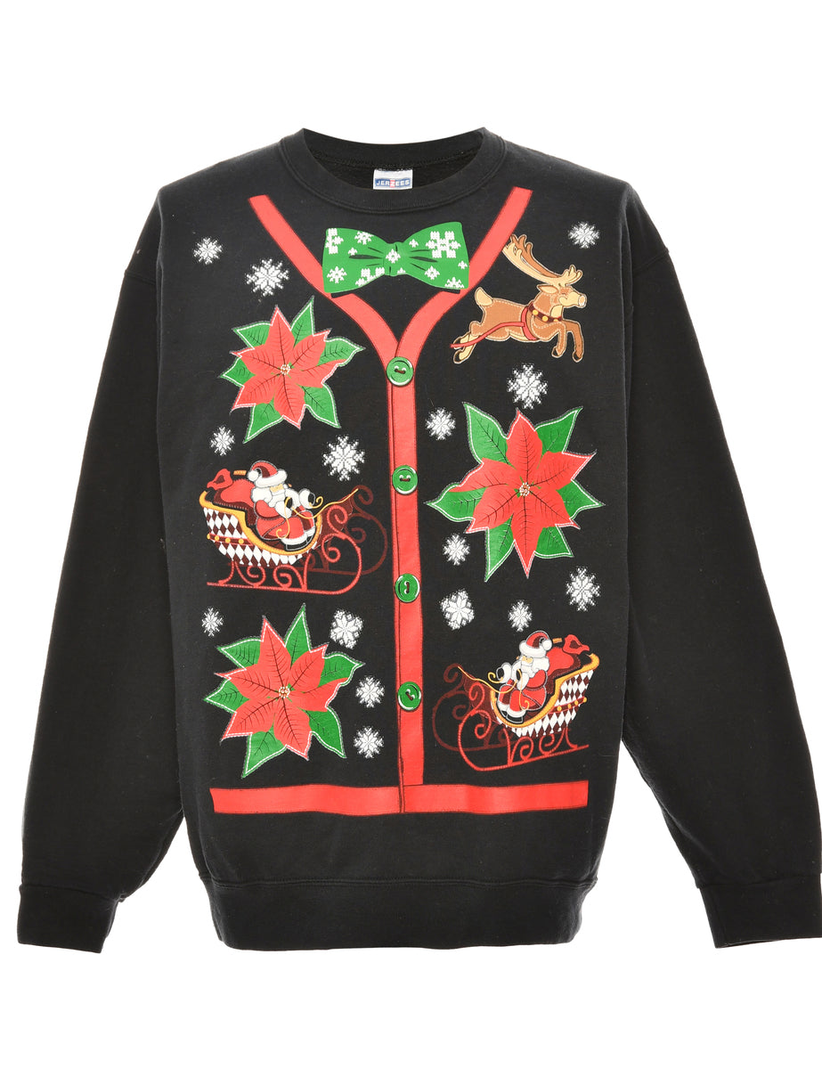 Santa Claus & Reindeer Black Christmas Sweatshirt - L