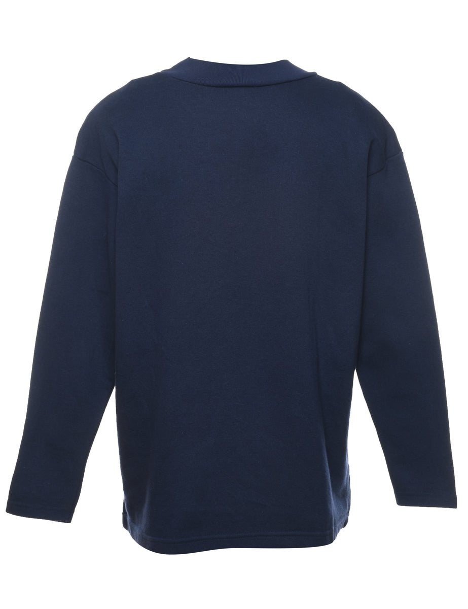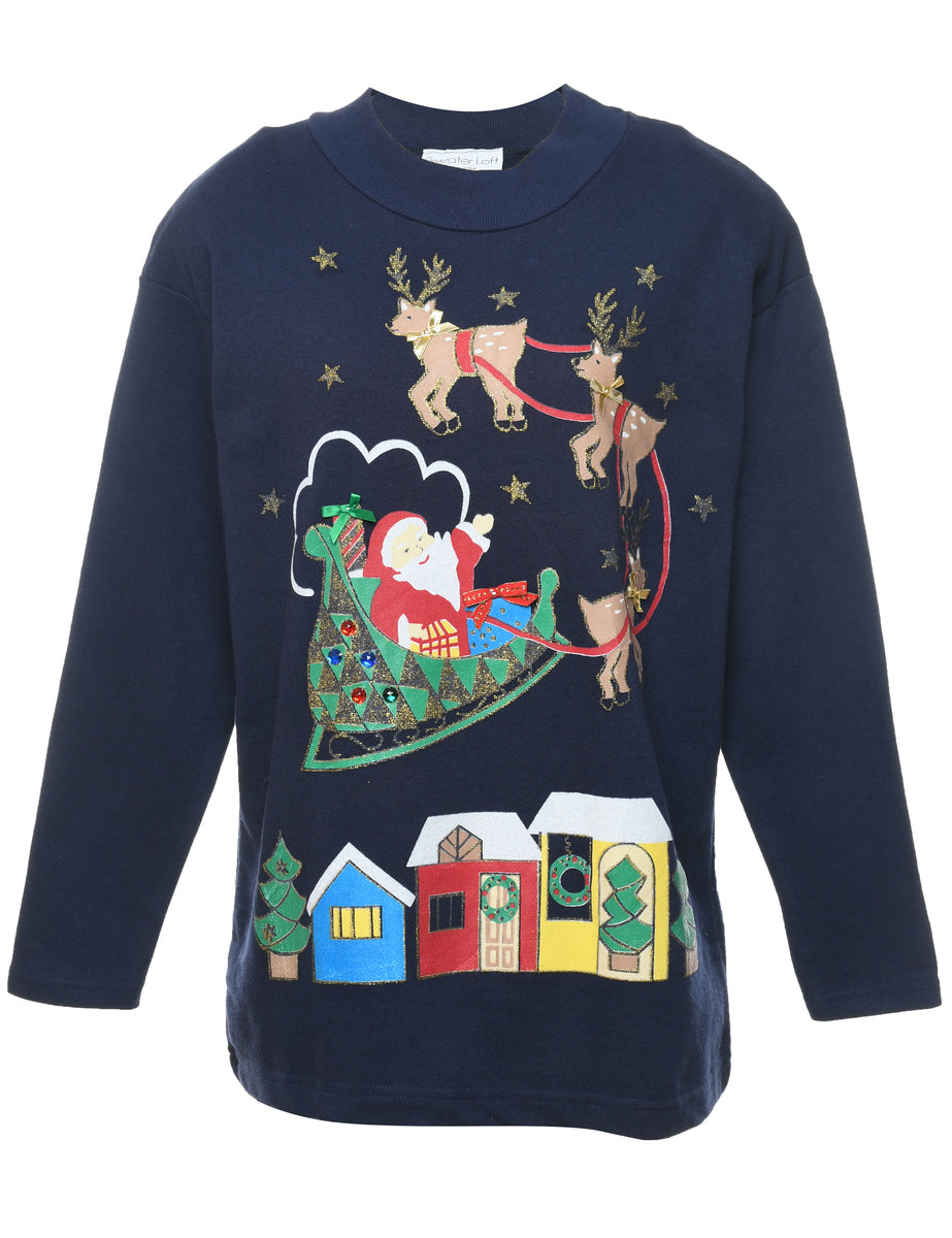 Santa claus reindeer christmas sweatshirt comes in navy a round neck.