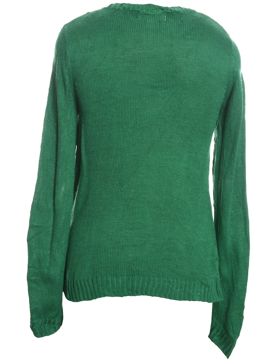 Santa Claus & Reindeer Green Knit Christmas Jumper - L