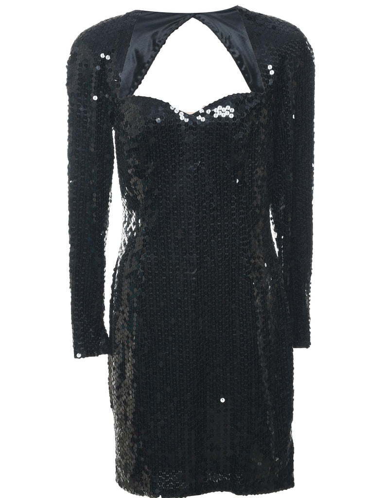 Vintage Sequined Black Cut-Out Evening Dress - L
