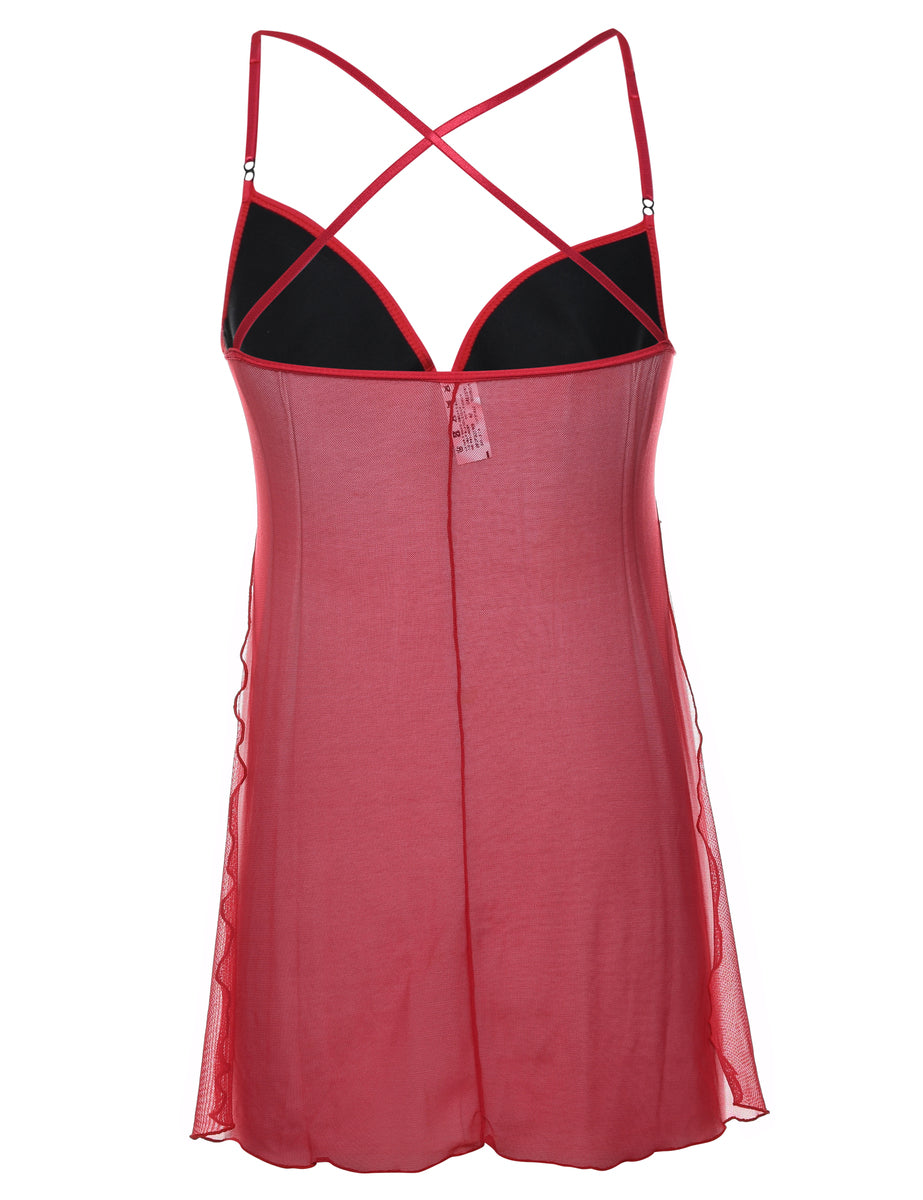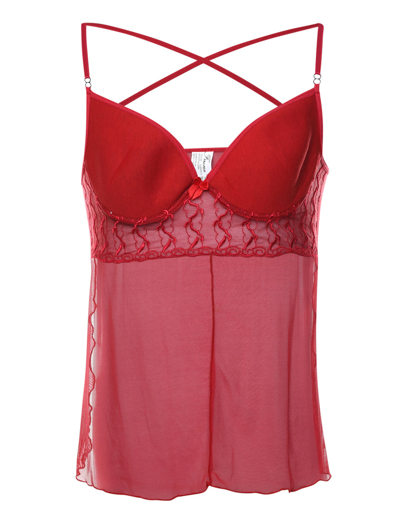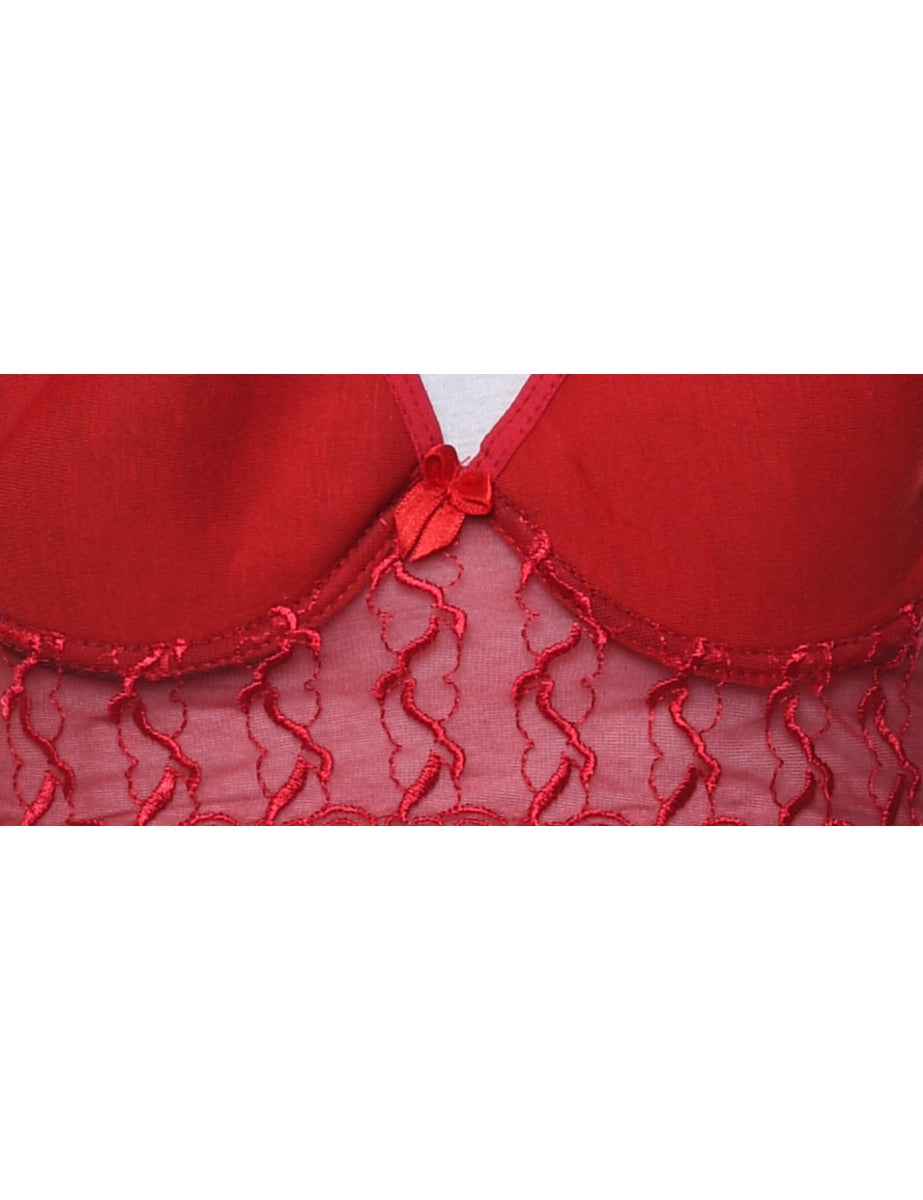 Red lace sheer babydoll complete with adjustable straps and a built-in bra.