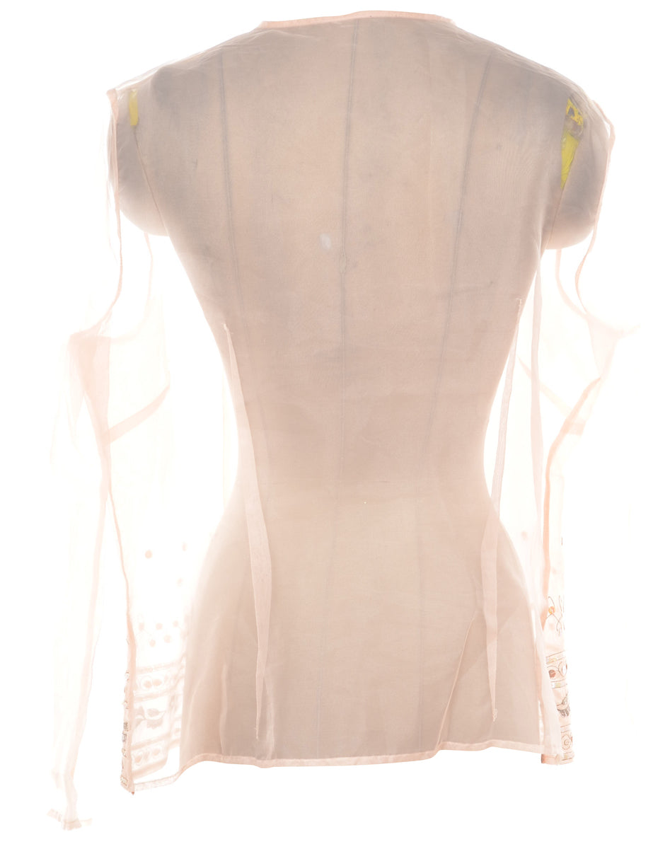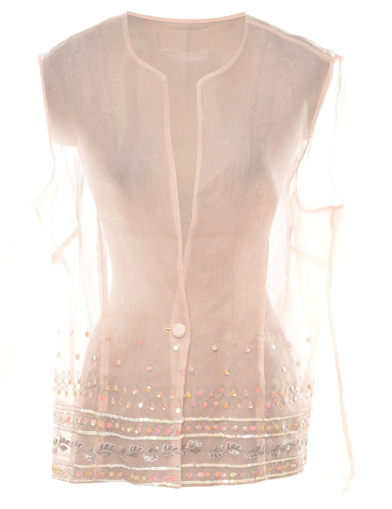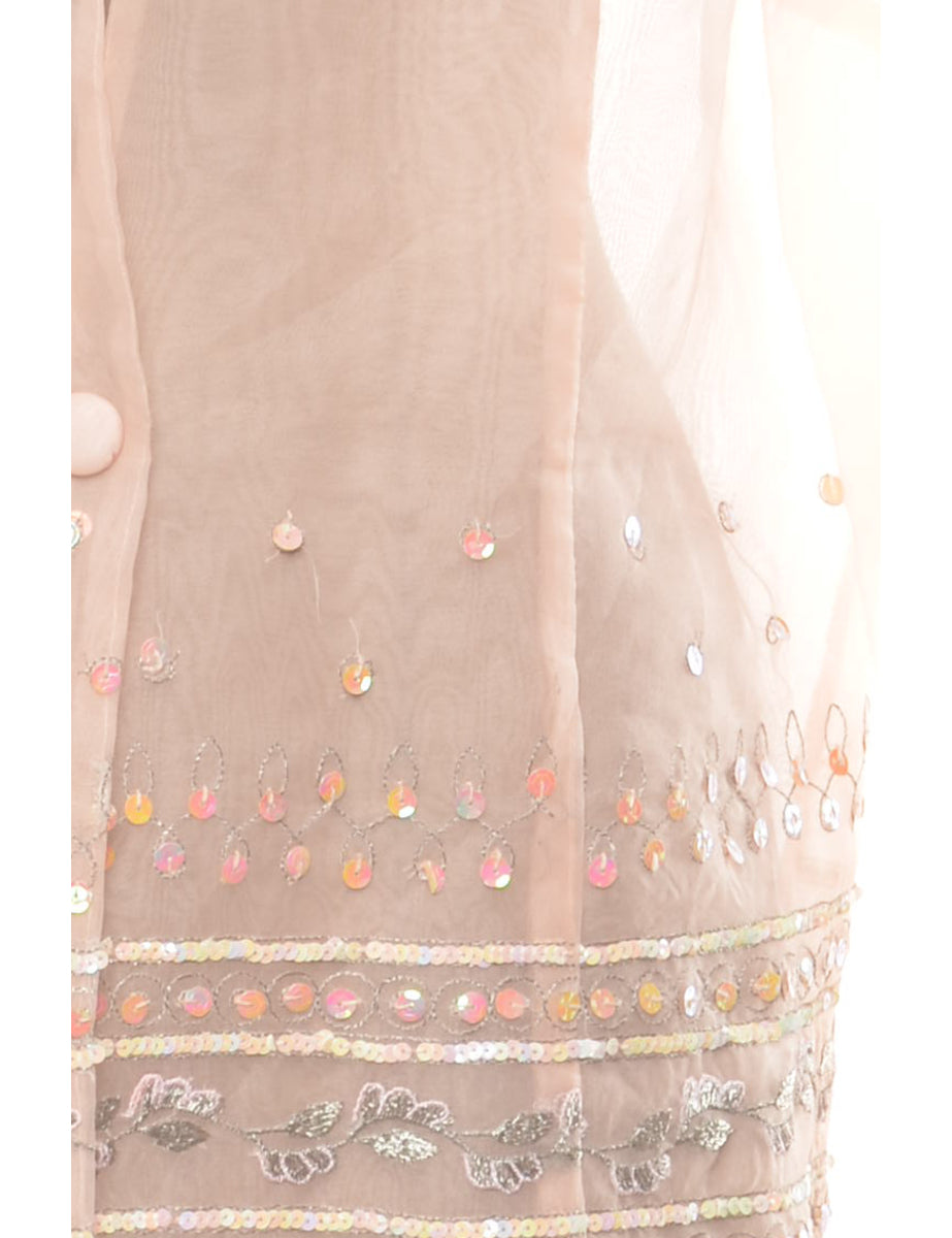 Evening jacket with sheer effect. Comes in pale pink with beading and sequins.